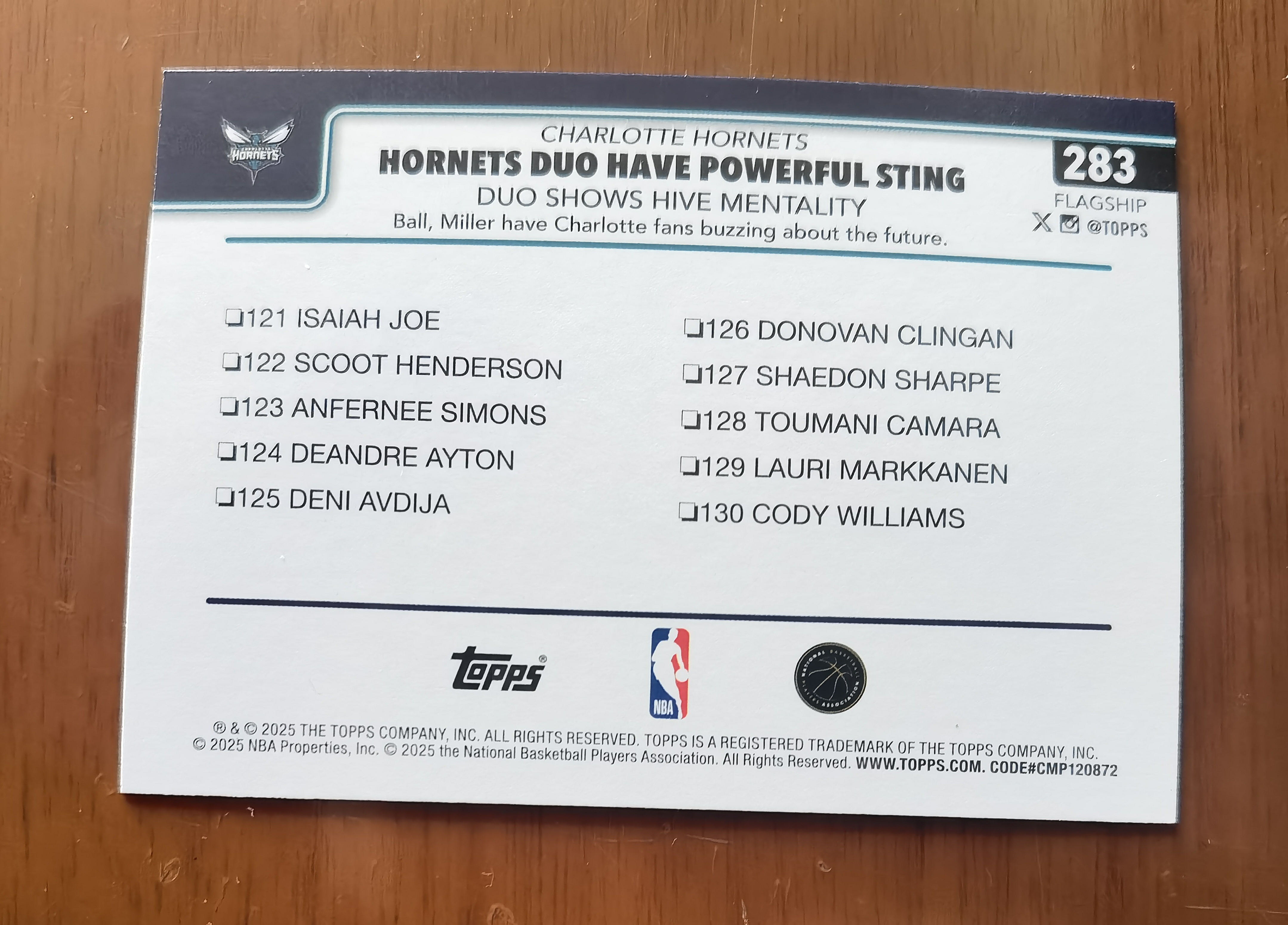 2025-26 Topps Basketball LaMelo Ball Duo Show Hive Mentality 黄蜂 拉梅洛 鲍尔 Base-Combo /250编 紫平行 收藏必备 卡品如图