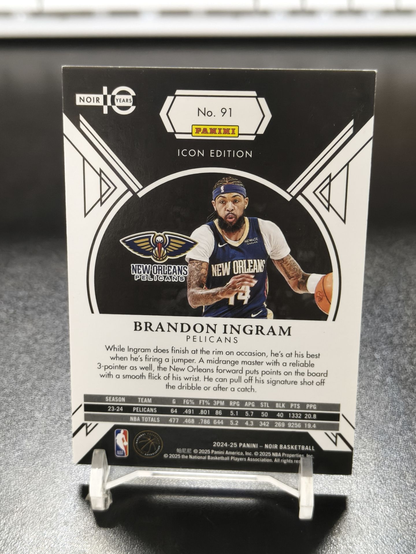 【浩行拍卖 截标预付82%】2024-25 panini noir brandon ingram 鹈鹕 布兰登 英格拉姆 紫平行 18/25编 瑕疵看图 专收必备「网展」1115K03劉