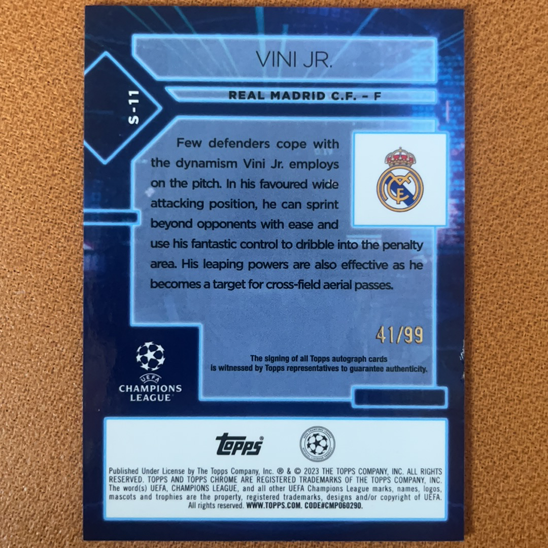 2022-23 Topps Chrome 欧冠 欧战 皇家马德里 皇马 Vini Jr 维尼修斯 小熊 标本 试验品 标本特卡 折射 99编 签字 实卡好看 收藏必备