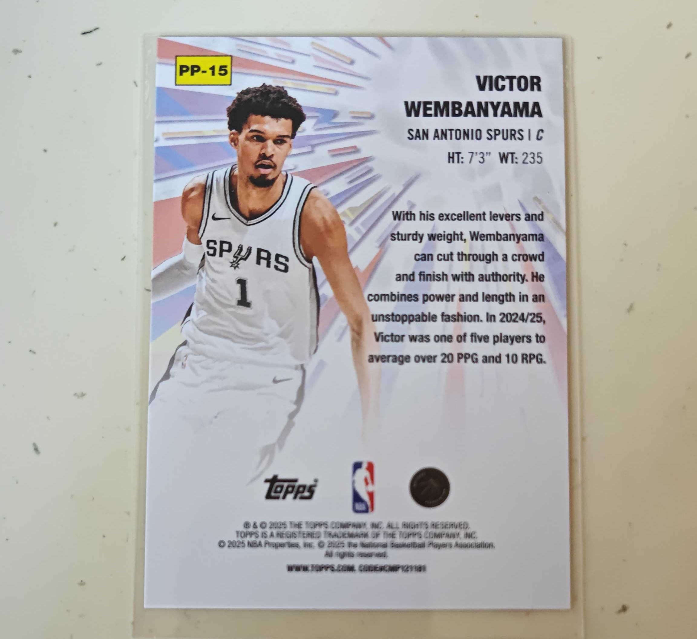 2025 Topps Chrome Victor Wembanyama 维克托 文班亚马 Power Players 特卡 碎闪折 折射 斑马 实卡好看 球员力量特卡 马刺