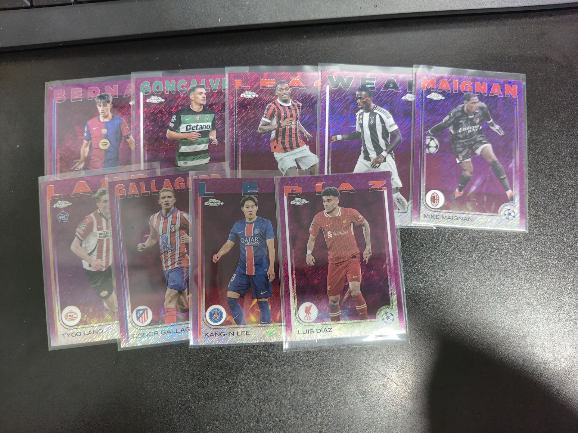 【浩行拍卖 截标预付82%】2025 topps Chrome 欧冠 路易斯 迪亚兹 李康仁 霍温 蒂霍 兰德 蒂莫西 维阿 康纳 加拉格尔 拉斐尔 莱奥等 紫shimmer折 折射 新秀看图 共9张 bh17「菡苞」1115D06夢
