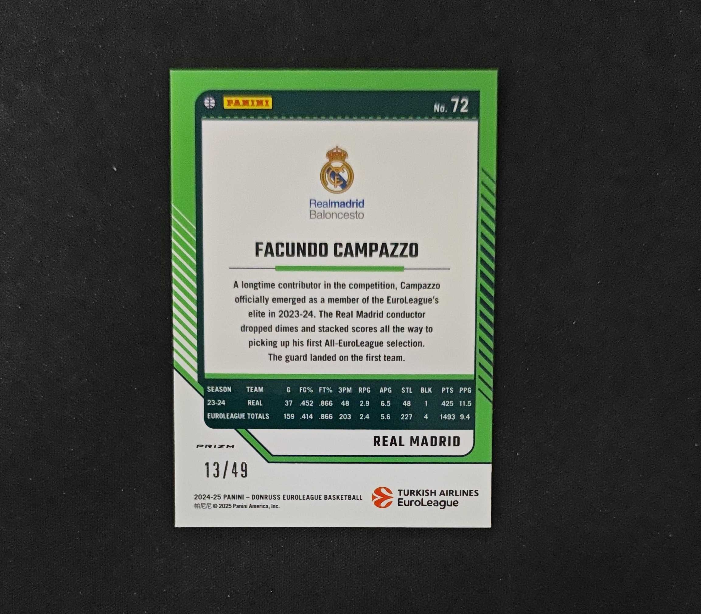 2024-25 Panini Donruss Facundo Campazzo 【SC拍卖】杜蕾斯op 欧洲联赛 坎帕佐 49编 蓝折 收藏必备(我科)