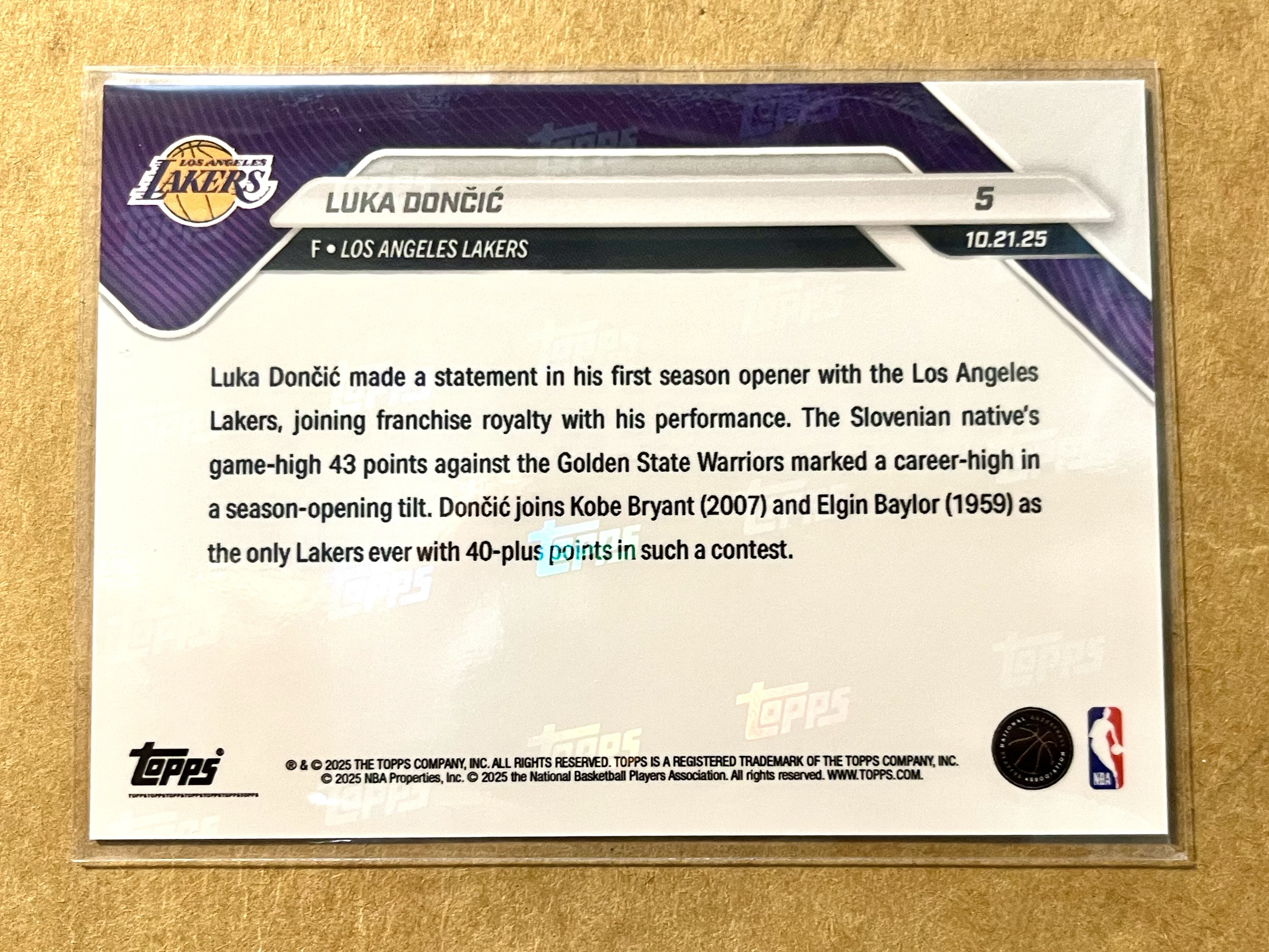 2025 Topps 【蓝矿】 Luka Doncic 卢卡·东契奇 Topps now系列 2025NBA常规赛 湖人 首秀就得分43分登顶湖人历史得分第一梯队