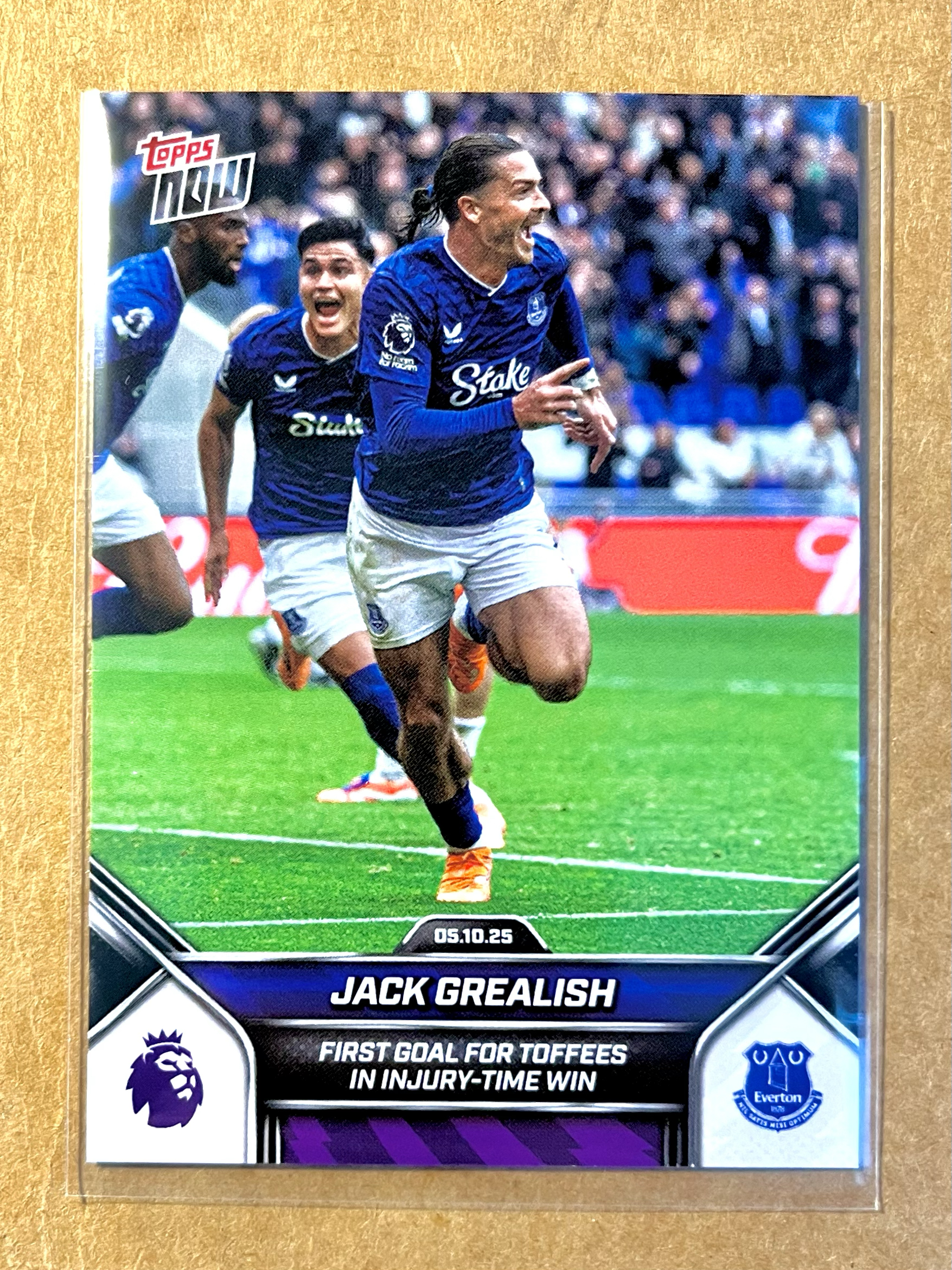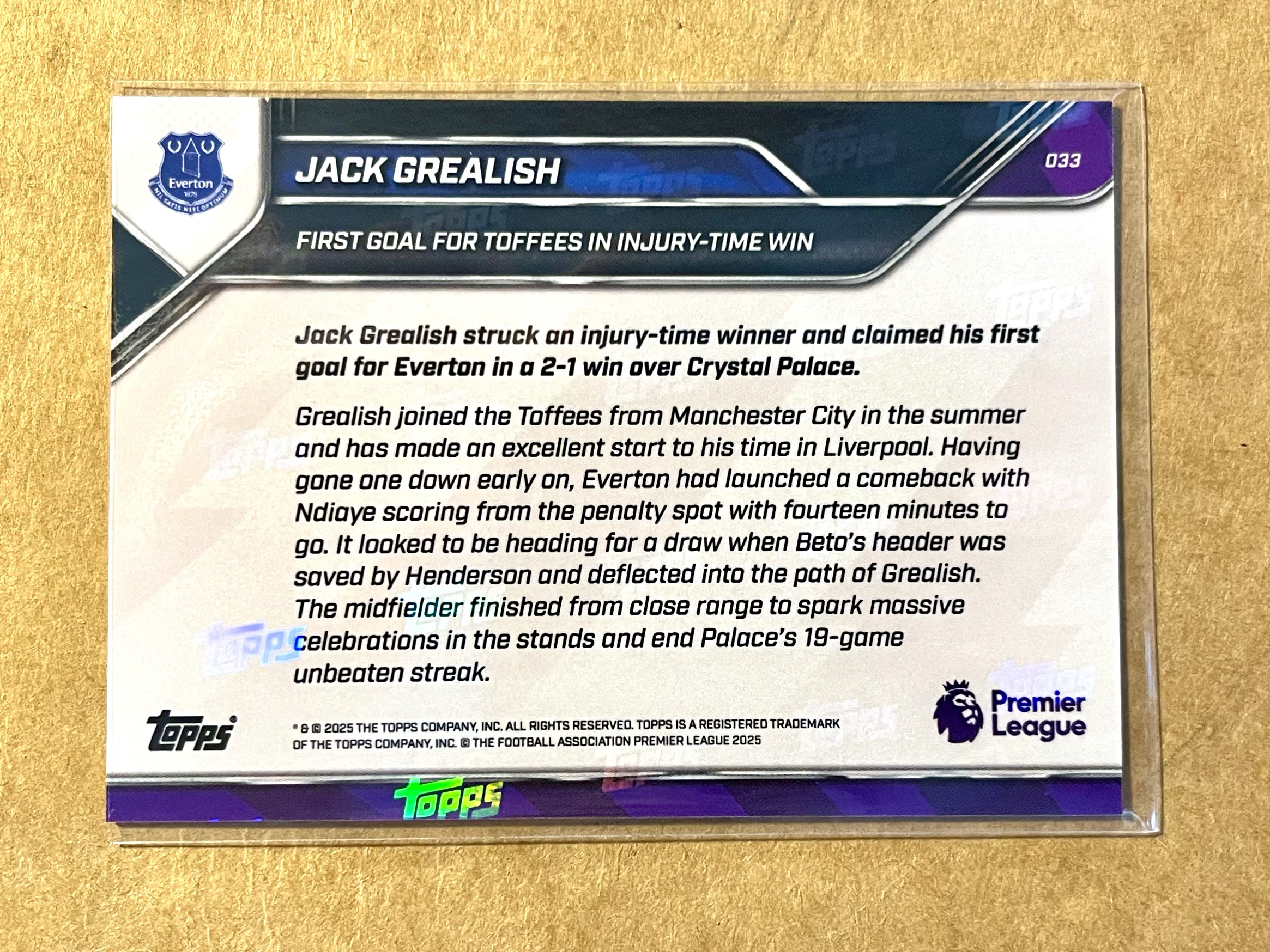 2025 Topps 【蓝矿】 Jack Grealish 杰克·格拉利什 Topps now系列 英超 埃弗顿 给我时间我就能证明自己,加盟太妃糖的首个进球!终结格拉斯纳带领的水晶宫19连胜。