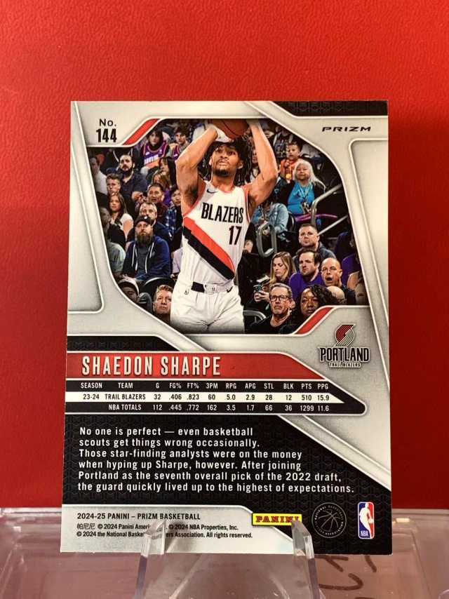 (老末精品代拍)2014-25 Panini prizm Shaedon Sharpe 谢登-夏普 开拓者 新赛季PZ 三色折 顺丰寄付X10