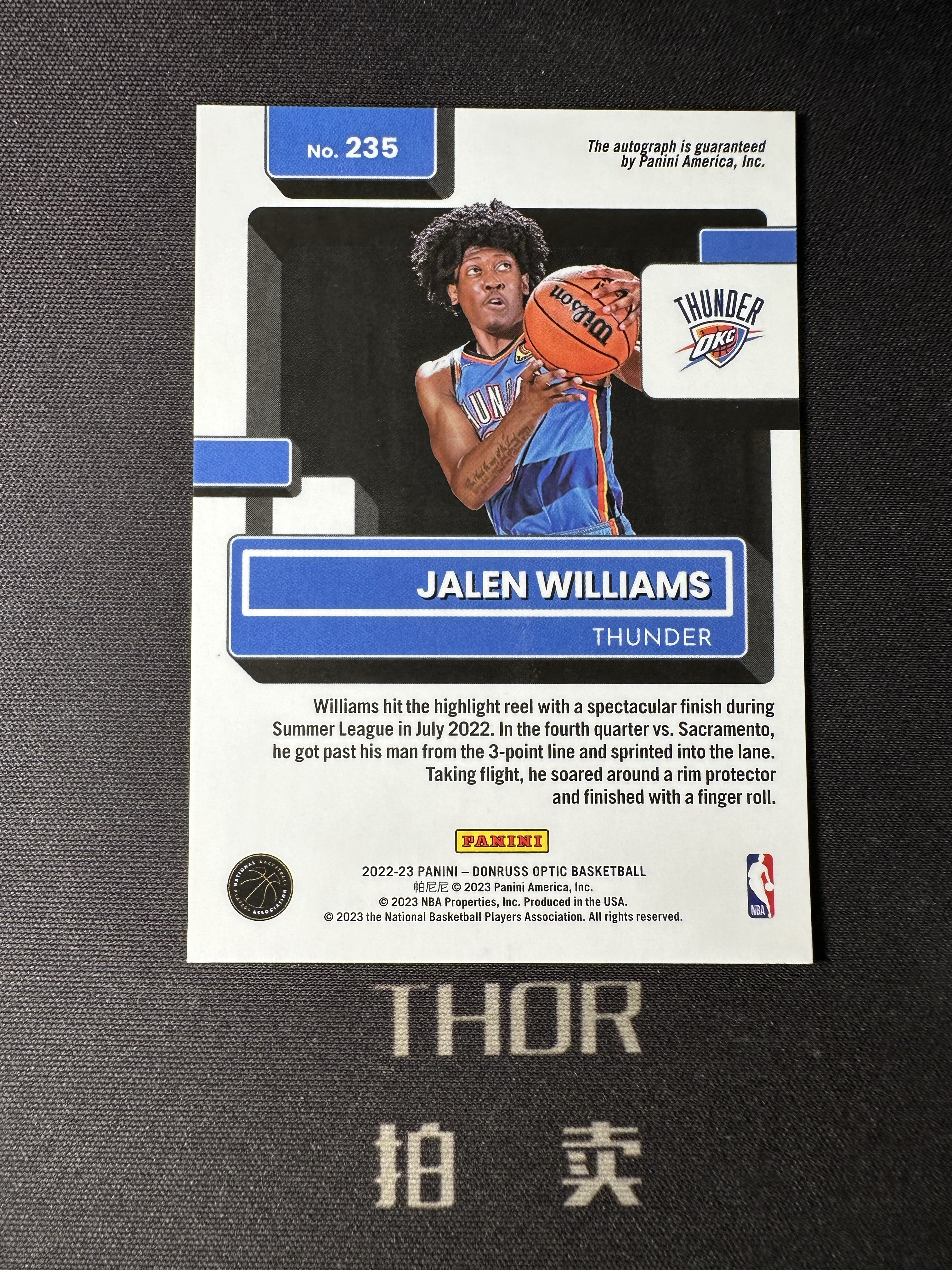 【Thor拍卖】2022-23 Panini Donruss Jalen Williams RC 球票op 雷霆 杰伦 威廉姆斯 老八 新秀 签字 卡签【校长】30