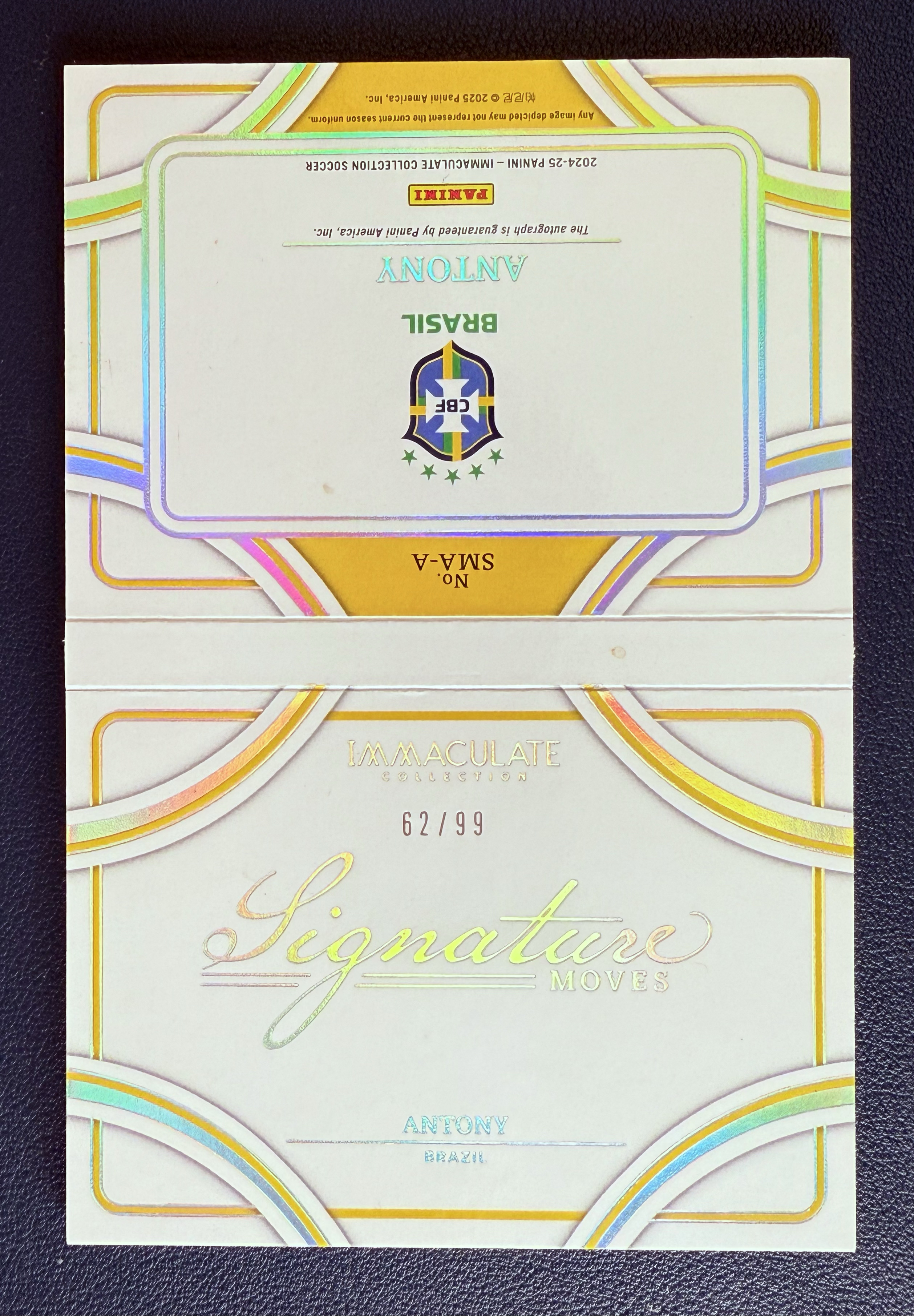2024-25 Panini Immaculate Antony 【安迪拍卖】足球imm 皇家贝蒂斯 巴西前锋 陀螺 安东尼 62/99编沙盒小书签字 卡签墨迹如图 送小书卡砖 未来可期投资收藏必备