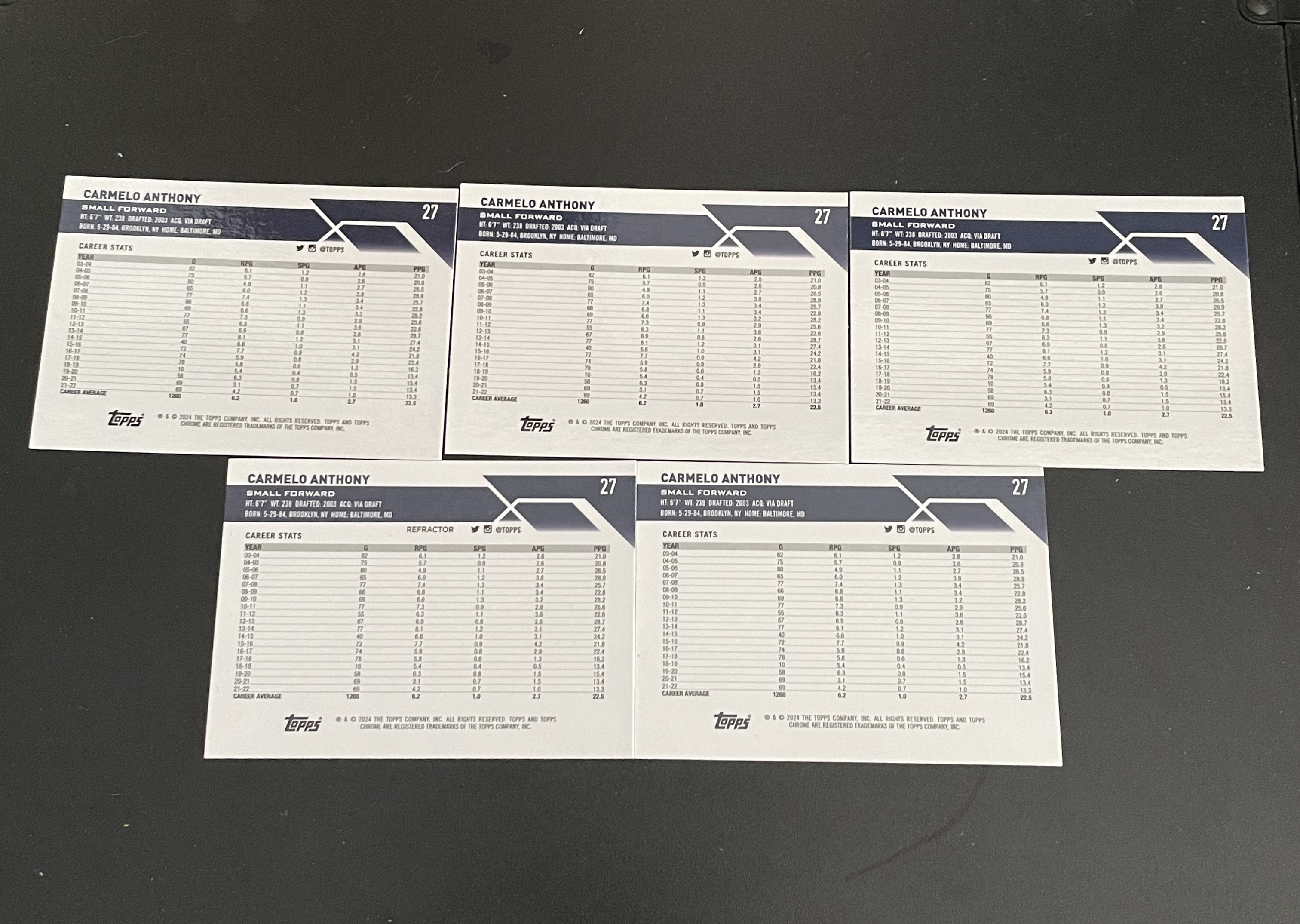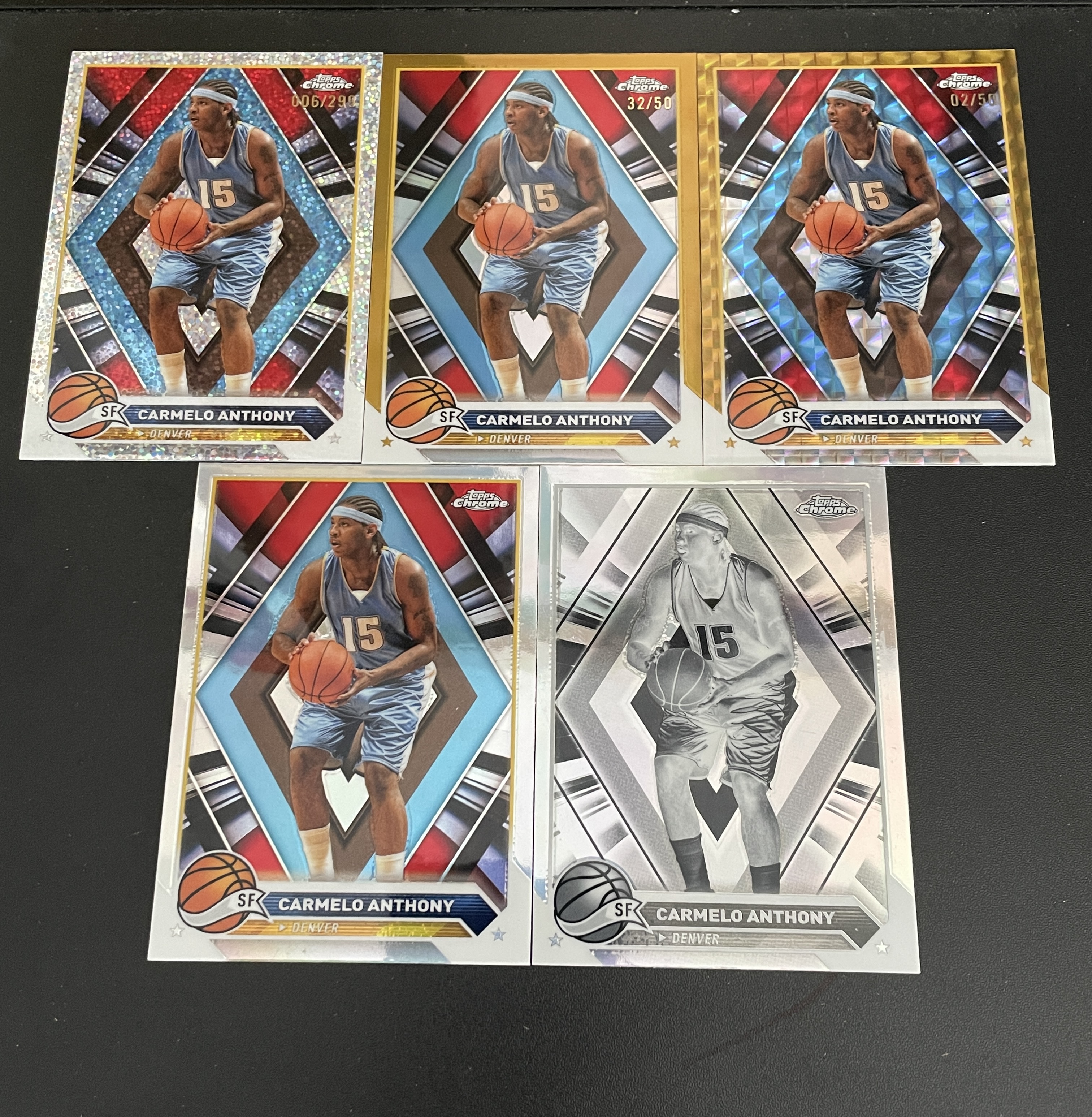2024 Topps Chrome Carmelo Anthony 卡梅隆 安东尼 彩虹套 3张 带编 50编 50编 299编 折射 金折 金马赛克 泡泡折 银折 印刷 模板 五张 lot 打包