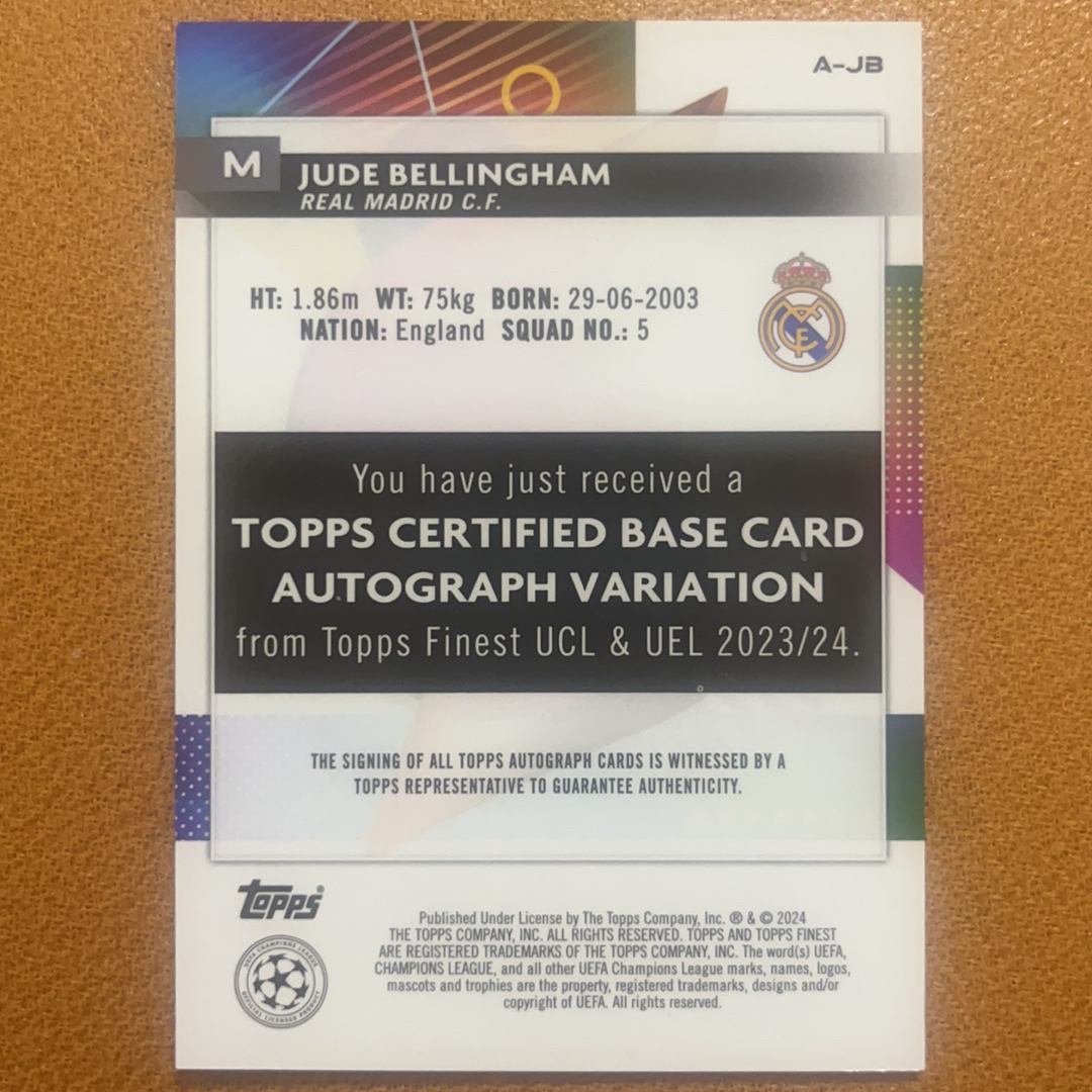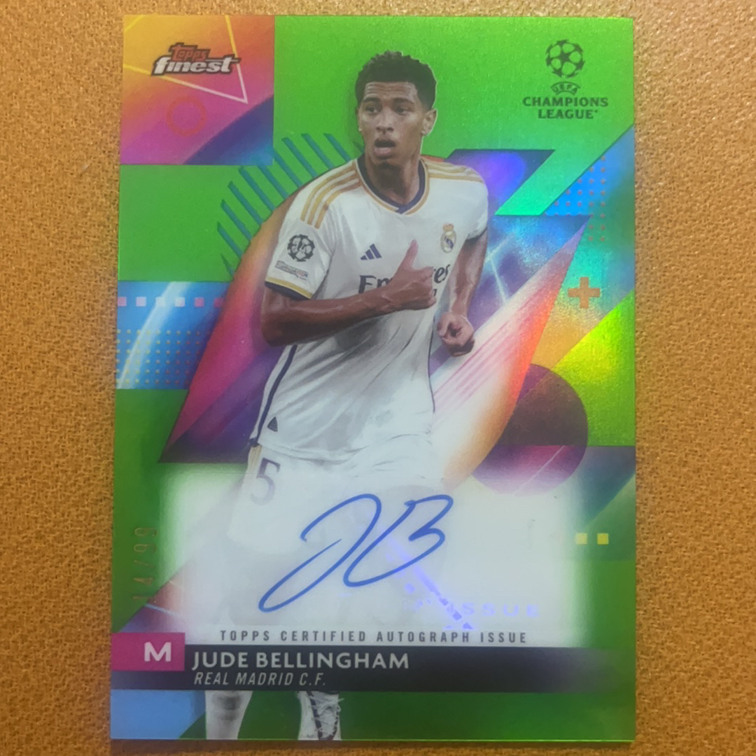 2023-24 Topps Finest Jude Bellingham 祖德 贝林厄姆 多特蒙德 皇家马德里 英格兰 欧冠 99编 绿折 折射 签字 签名 带砖发