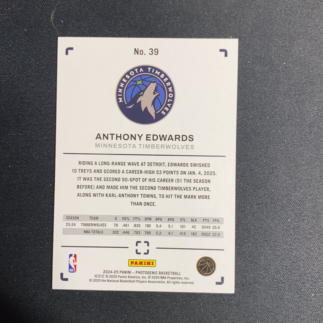2024-25 Panini PaniniPhotoGenicNBA Anthony Edwards 上镜 森林狼 爱德华兹 华子 卡品如图 空白
