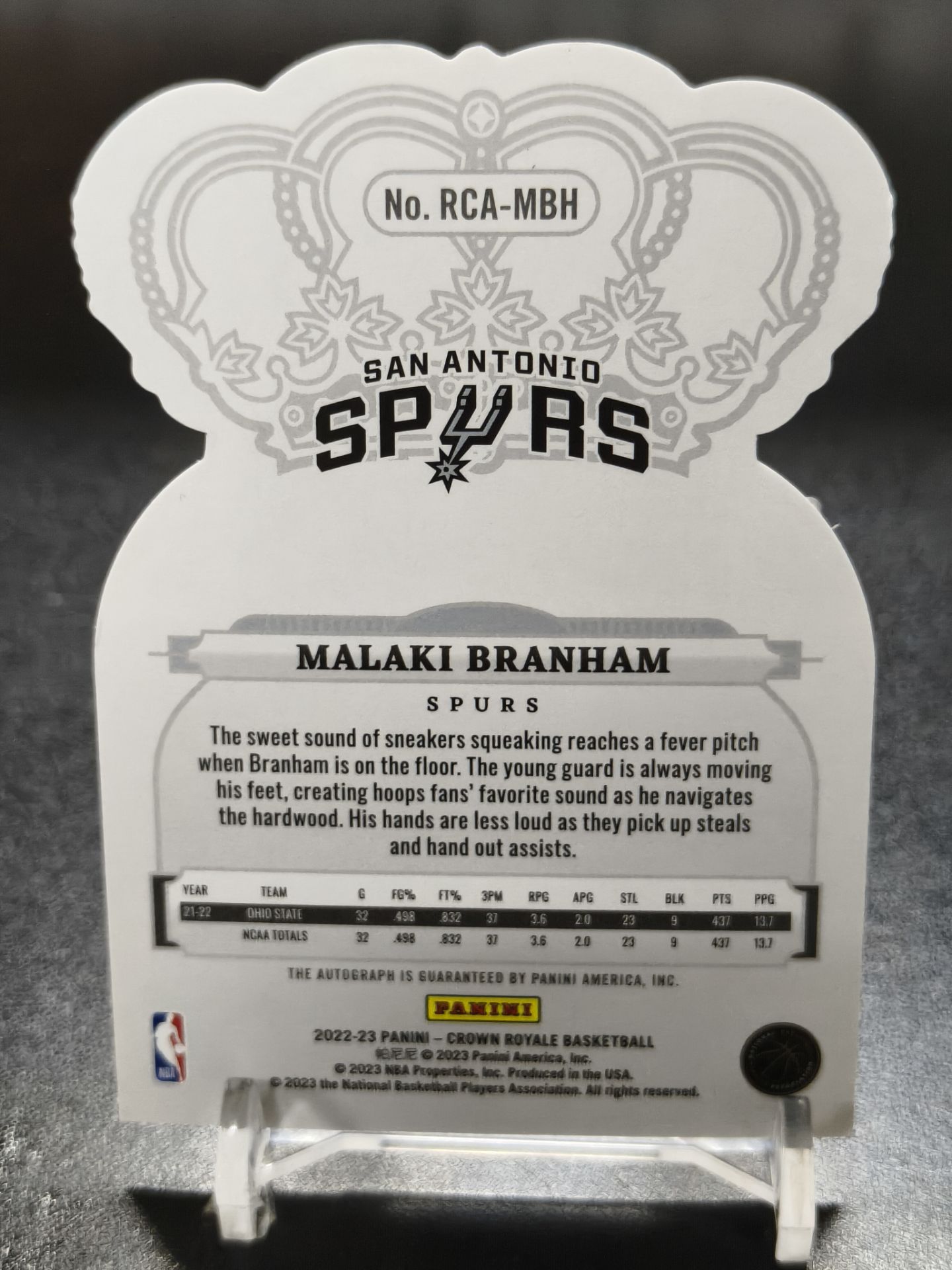 【浩行拍卖 截标预付82%】2022-23 panini crown royale malaki branham 皇冠 马刺 马拉凯 布拉纳姆 rc 新秀 粉折 折射 签字 22/49编 专收必备「网展」1115D07劉