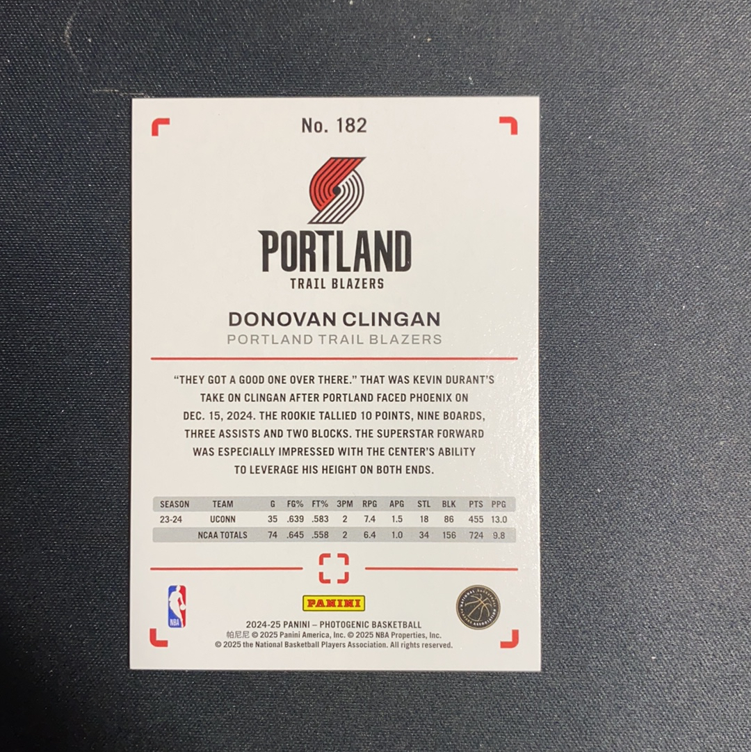 2024-25 Panini PaniniPhotoGenicNBA Donovan Clingan RC 上镜 开拓者 新秀 克林根 闪电折 卡品如图 空白