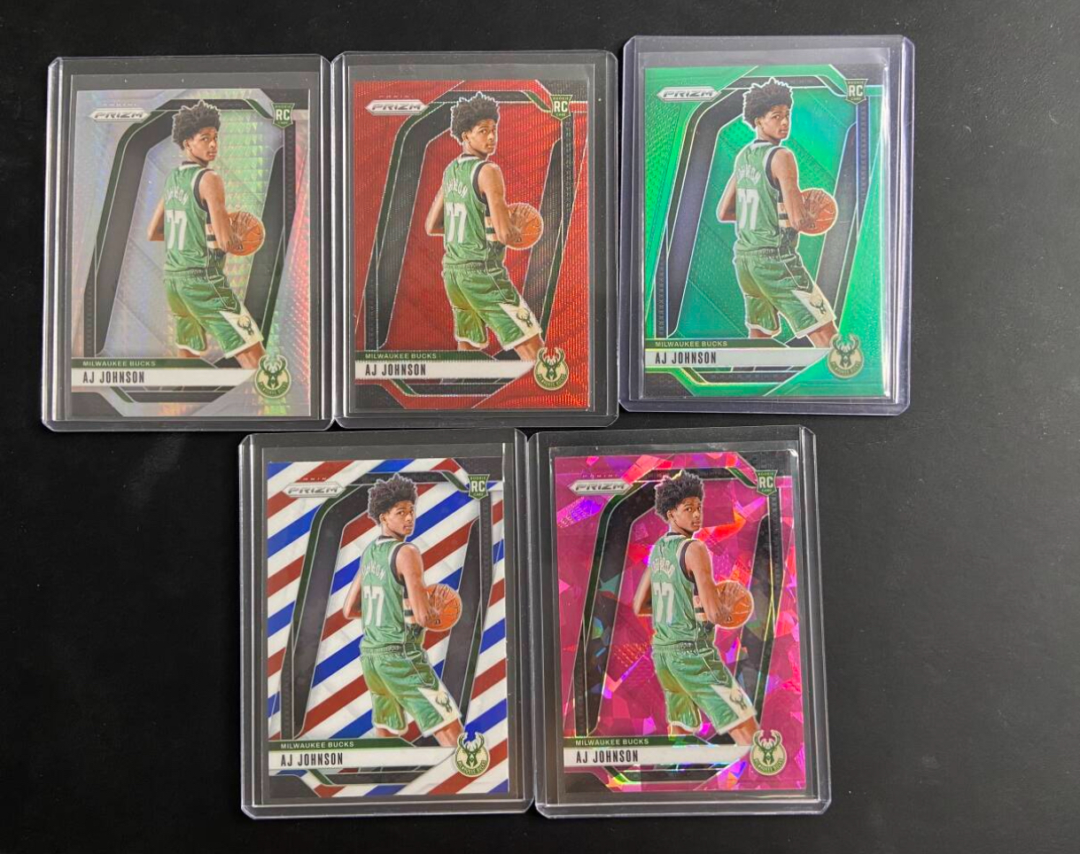 2024-25 Panini Prizm AJ Johnson 奇才 雄鹿 rc 新秀 AJ 约翰逊 hyper 脉冲 红波纹 绿折 三色 红碎冰 折射  Lot不保卡品@库里隔扣文班亚马