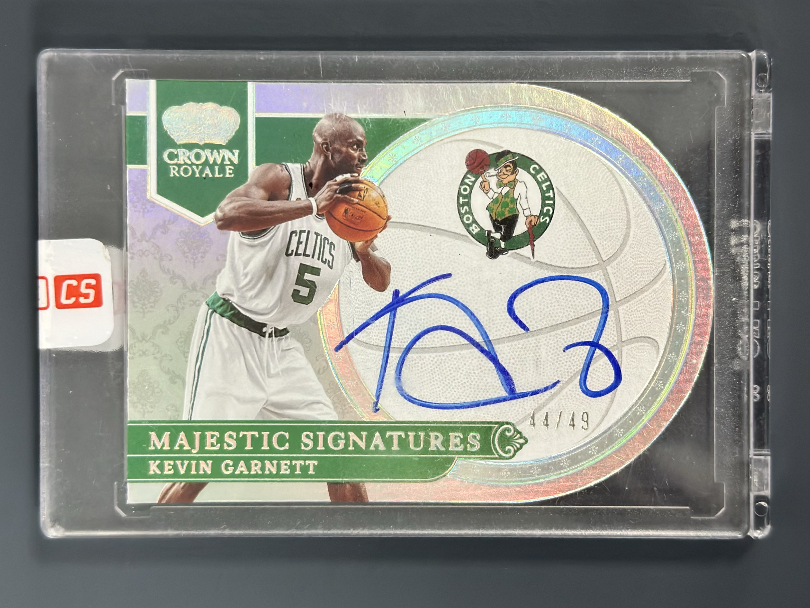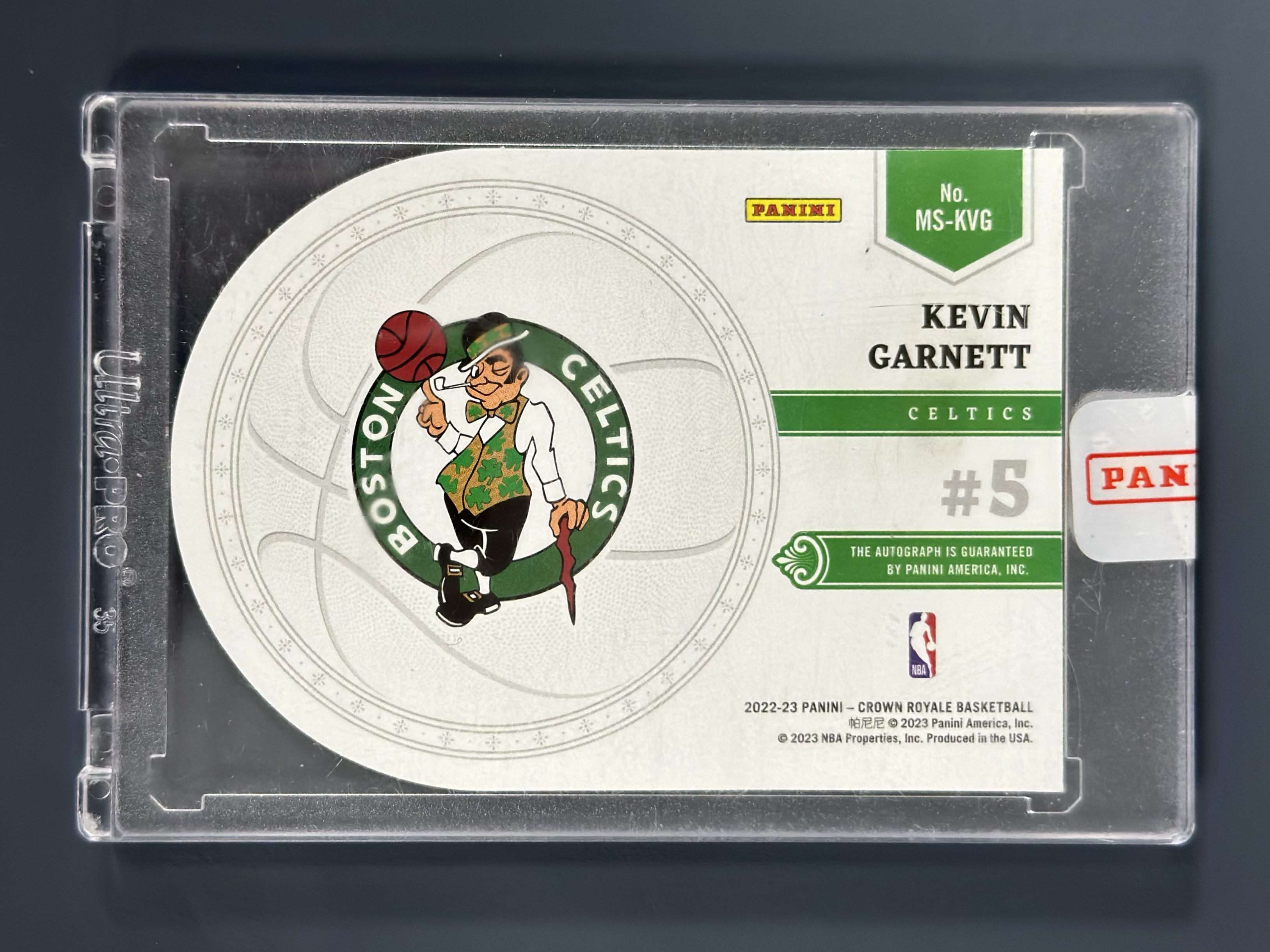 2022-23 Panini Crown Royale Kevin Garnett 皇冠 凯尔特人 狼王 凯文 加内特 KG 44/49编 卡签 签字 Majestic 横版 异型切割 原封砖【广诚】