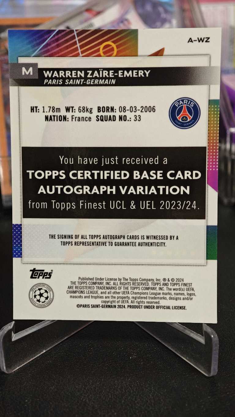 2024 Topps Finest Warren Zaïre-Emery [隔天不合并]🇫🇷 巴黎圣日耳曼 39/50 金折 签字 埃梅里 字迹清晰不出框 杜埃队友 姆巴佩 实卡拍摄,阅读商品描述