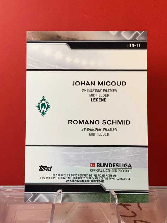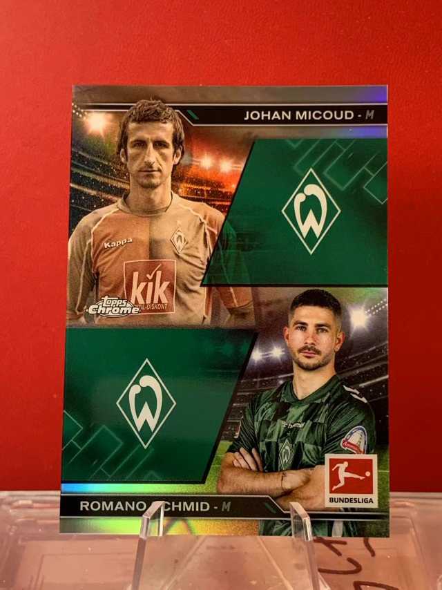 (老末精品代拍) 2025 Topps chrome johan micoud 云达不来梅 约翰 米库 Romano Schmid 罗马诺 施密德   德甲TC 双人特卡 银折 顺丰E31