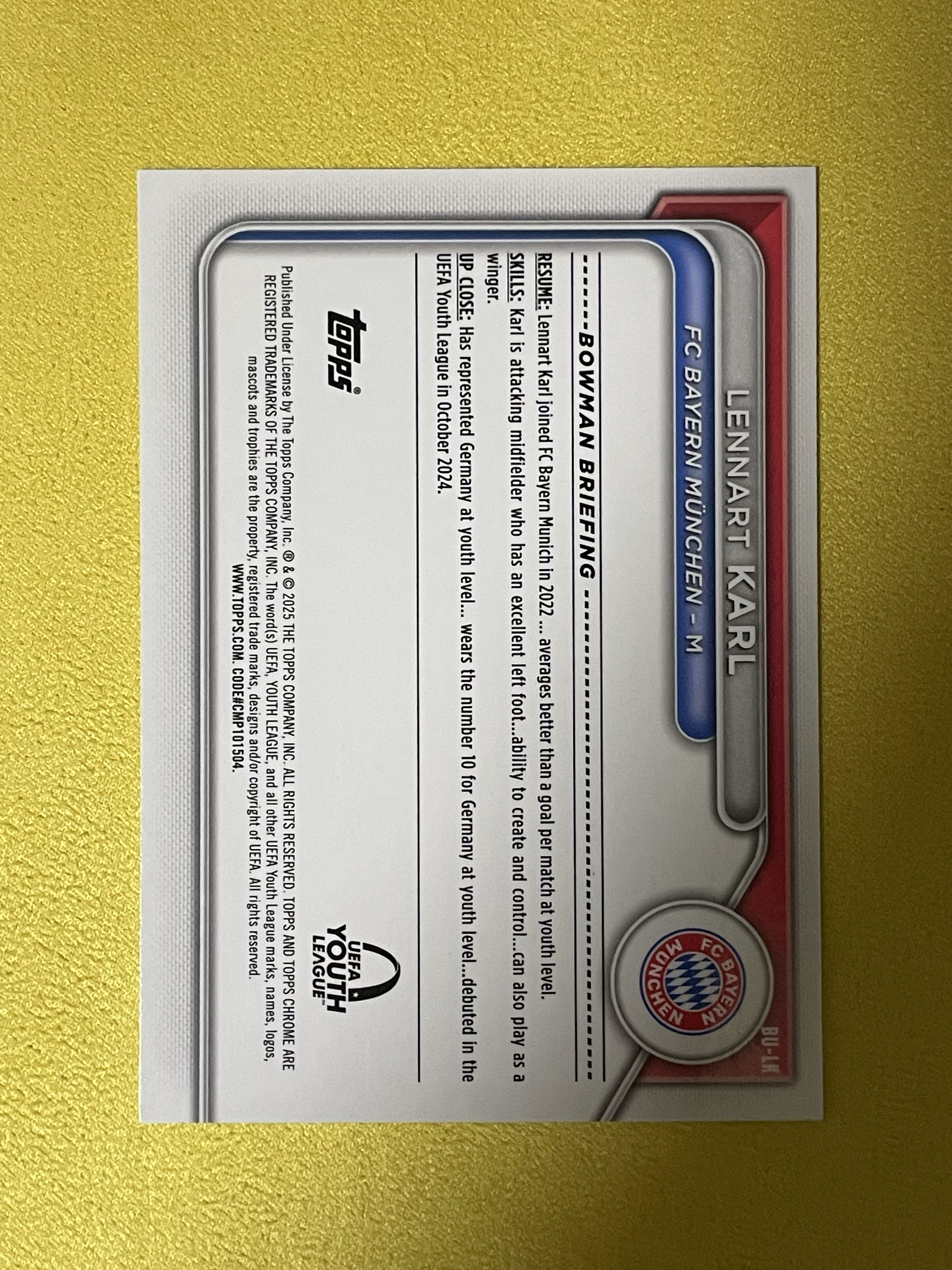 2025 Topps Chrome Lennart Karl RC 欧战TC Bowman 欧青 拜仁慕尼黑 伦纳特 卡尔 1st 银折 大热新秀 卡品如图 收藏必备 2