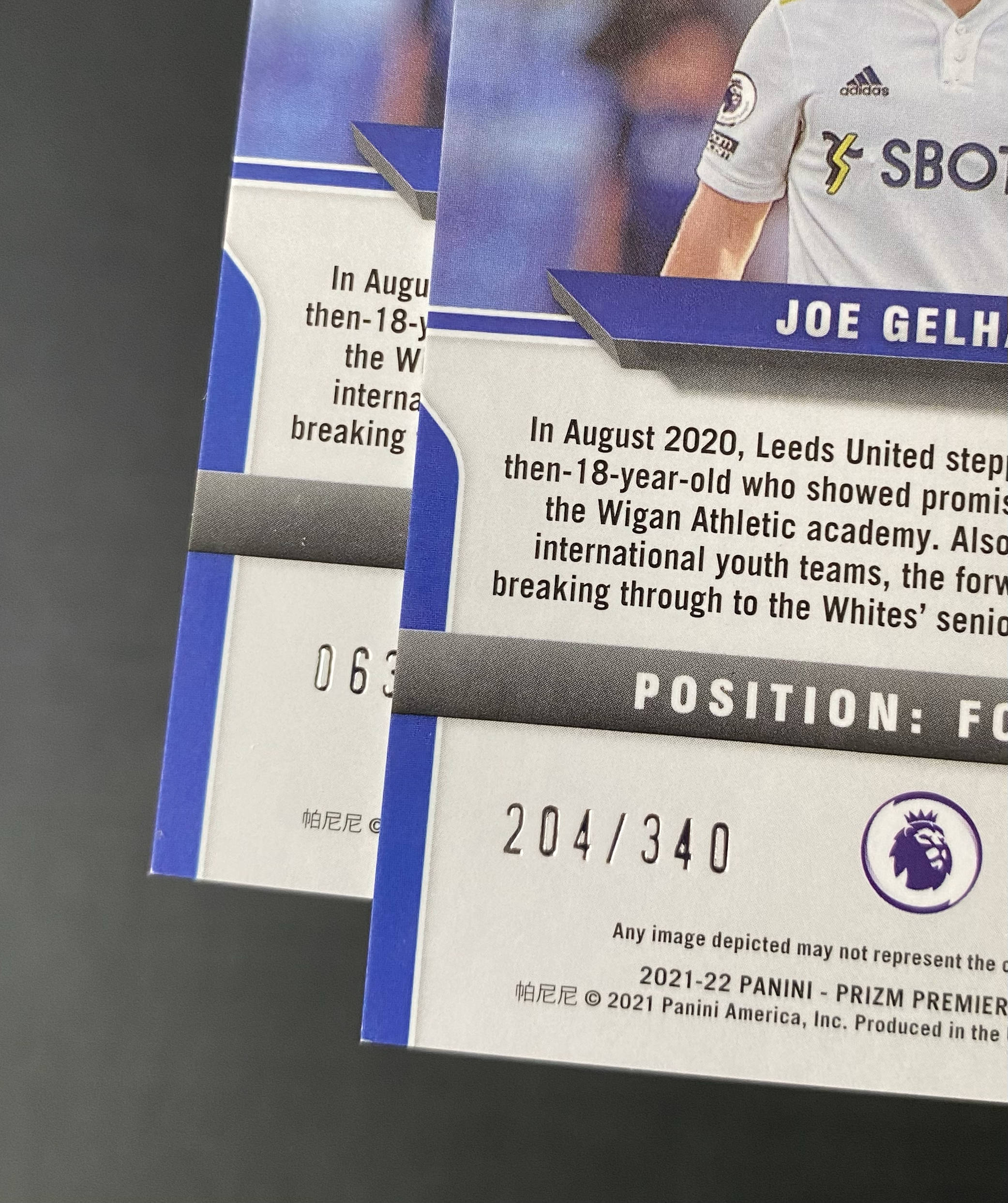 2021-22 Panini Prizm Joe Gelhardt RC 英超Prizm 利兹联新星 乔格尔哈特 新秀RC红MOJO折射 159编 红折 199编 蓝折 340编 微瑕如图【冠军】