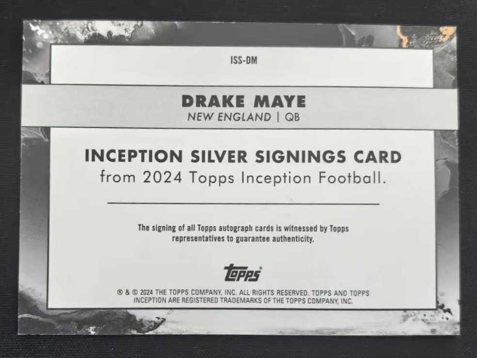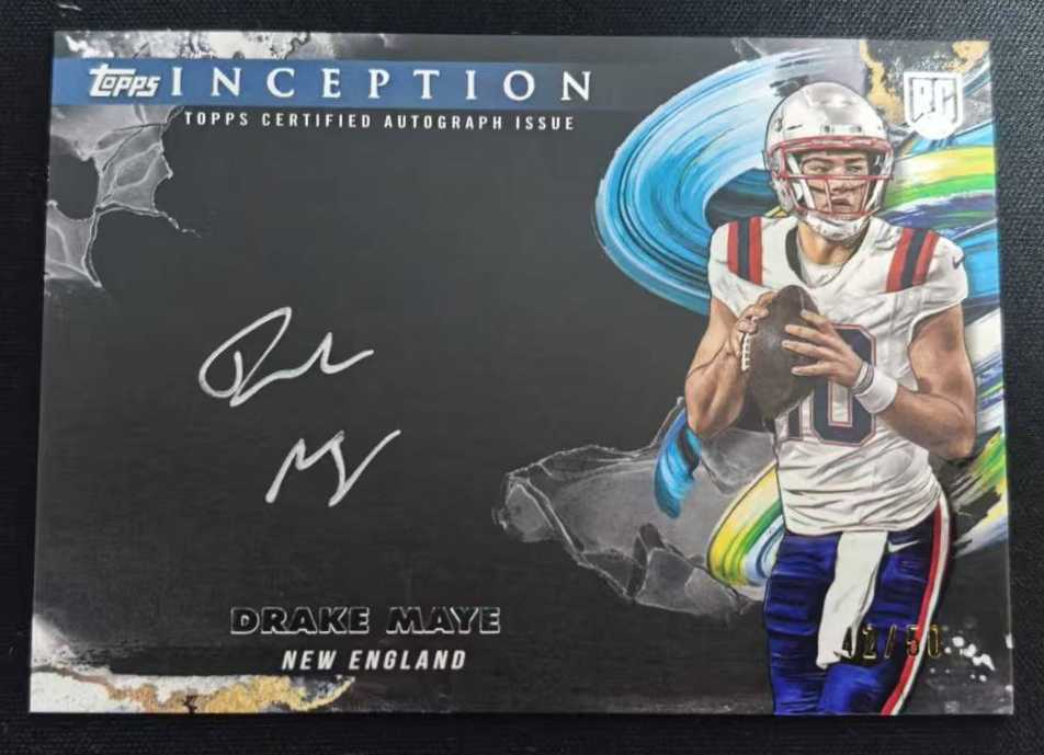 2025 Topps 【锡安代卖】 累计照常 橄榄球nfl inception盗梦空间 新秀银笔签字卡签 50编 新英格兰爱国者探花四分位 有望冲击双mvp drake maye 梅耶 卡品如图 冲动