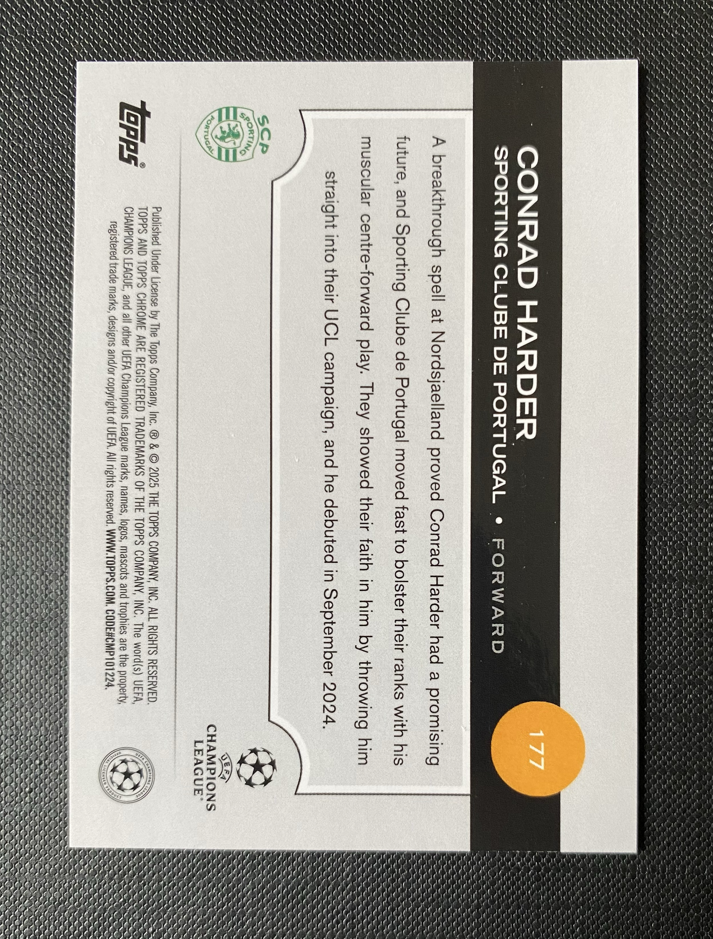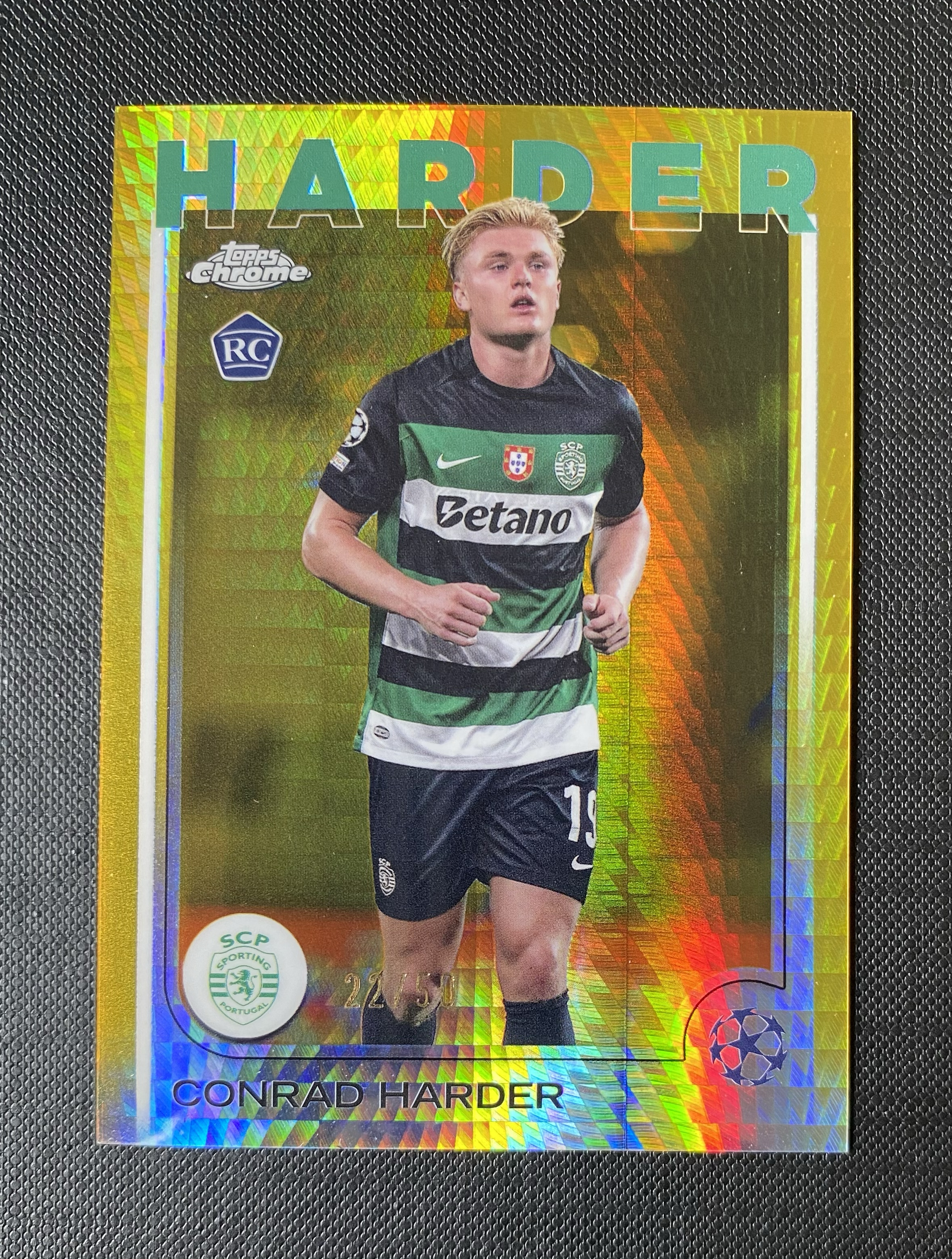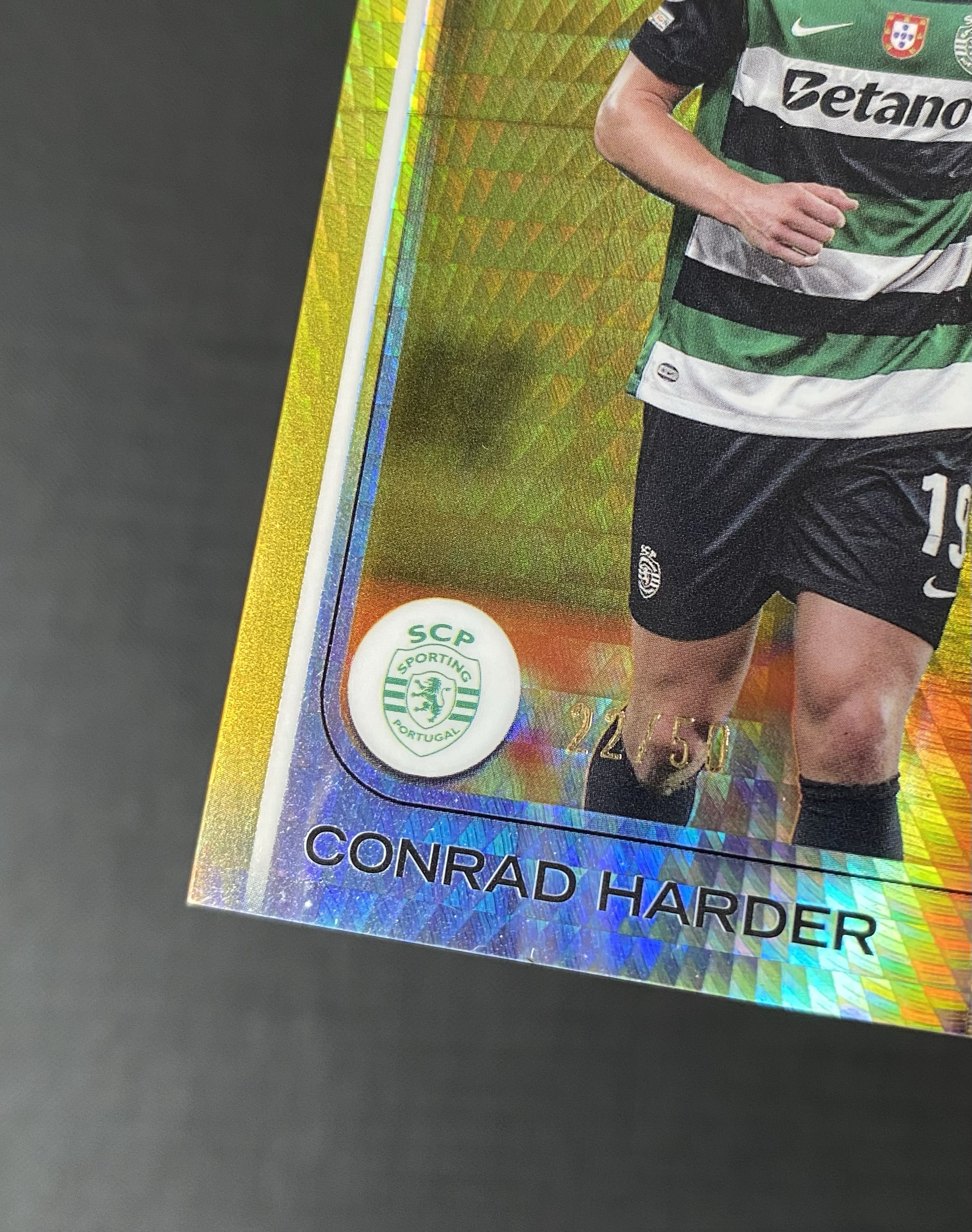 2024-25 Topps Chrome Conrad Harder RC 葡萄牙体育 莱比锡红牛 康拉德哈德 新秀RC金折 金Hyper折射 22/50编 实卡好看 潜力巨大 微瑕如图【冠军】