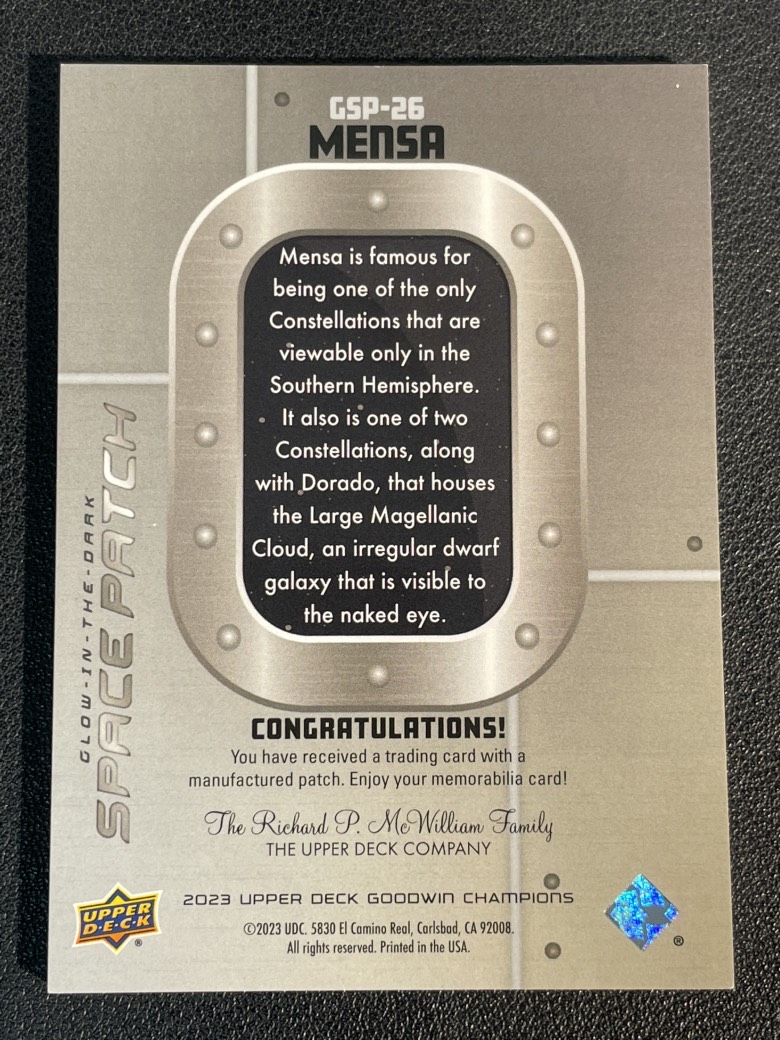 2023 Upper Deck Goodwin Champions Mensa 285 UD 古德温 大窗 星座刺绣 南天星座之一 门萨 space patch 微瑕如图 卡品如图 朕