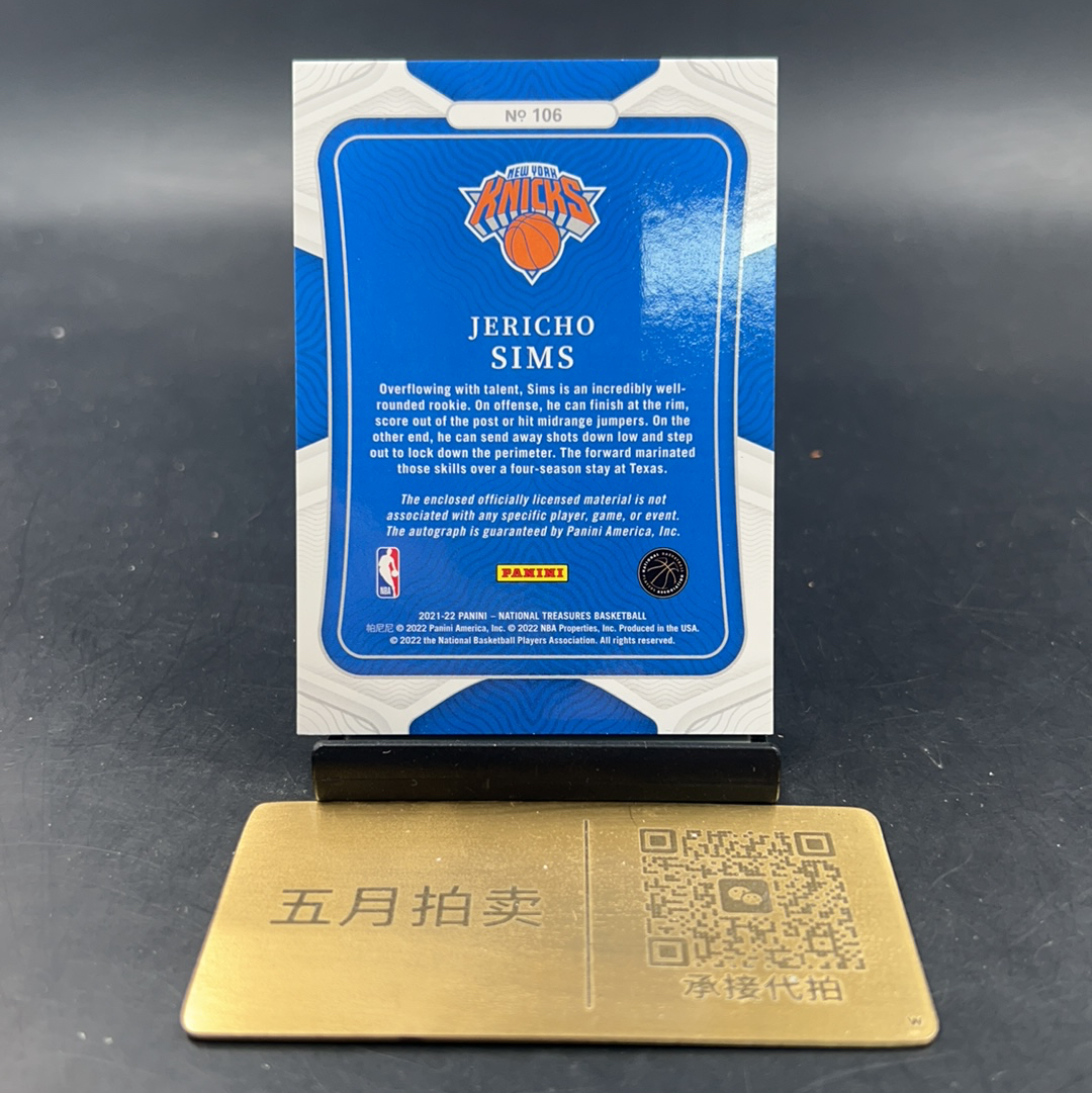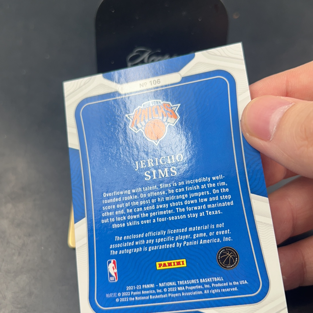 2021-22 Panini National Treasures Jericho Sims 【五月拍卖】国宝尼克斯 杰里科 西姆斯 新秀RC 75编RPA 球衣物料卡签 patch签字 微瑕冯哥72