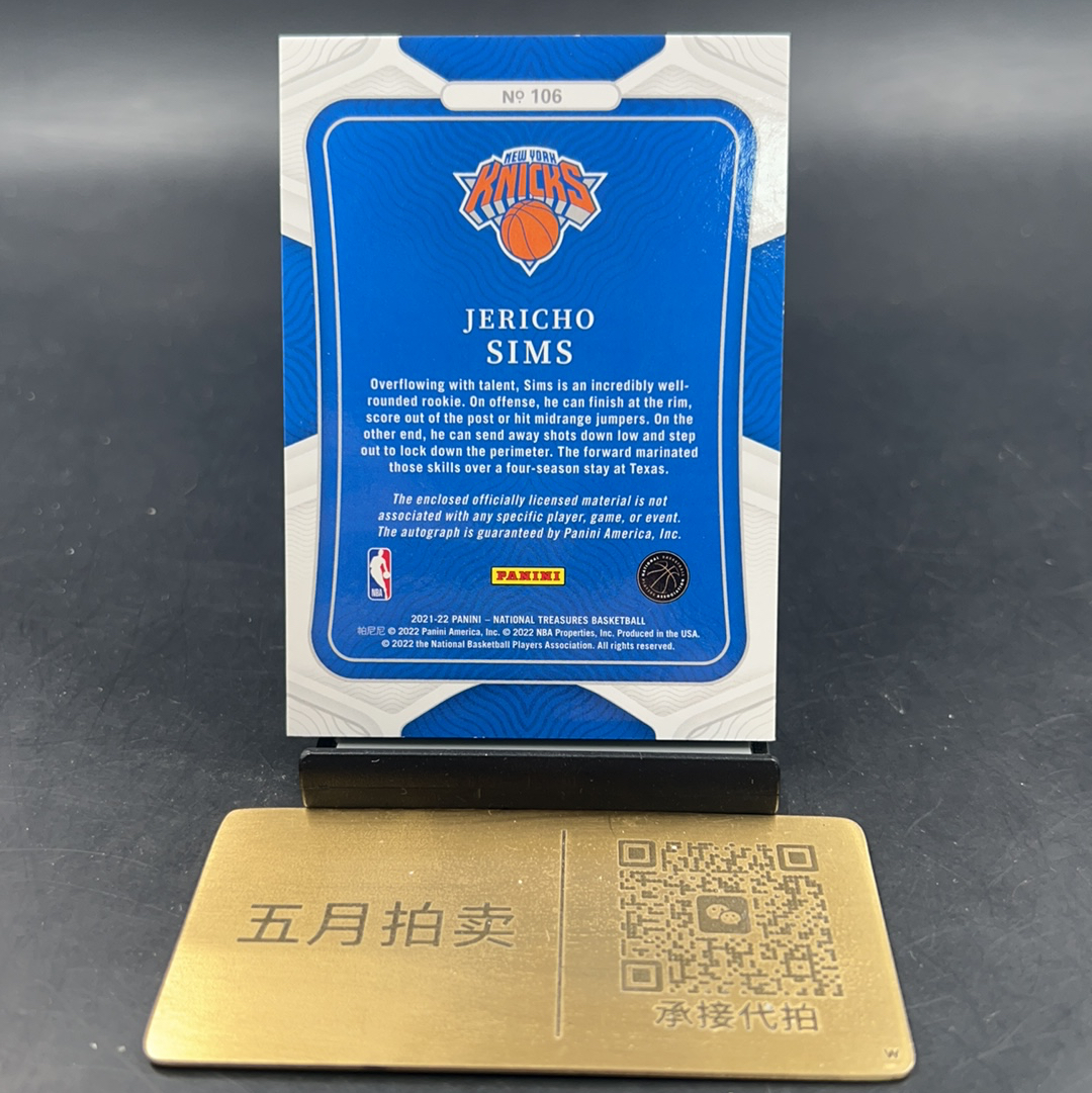 2021-22 Panini National Treasures Jericho Sims 【五月拍卖】国宝尼克斯 杰里科 西姆斯 新秀RC 25编RPA 球衣物料卡签 patch签字 微瑕冯哥73