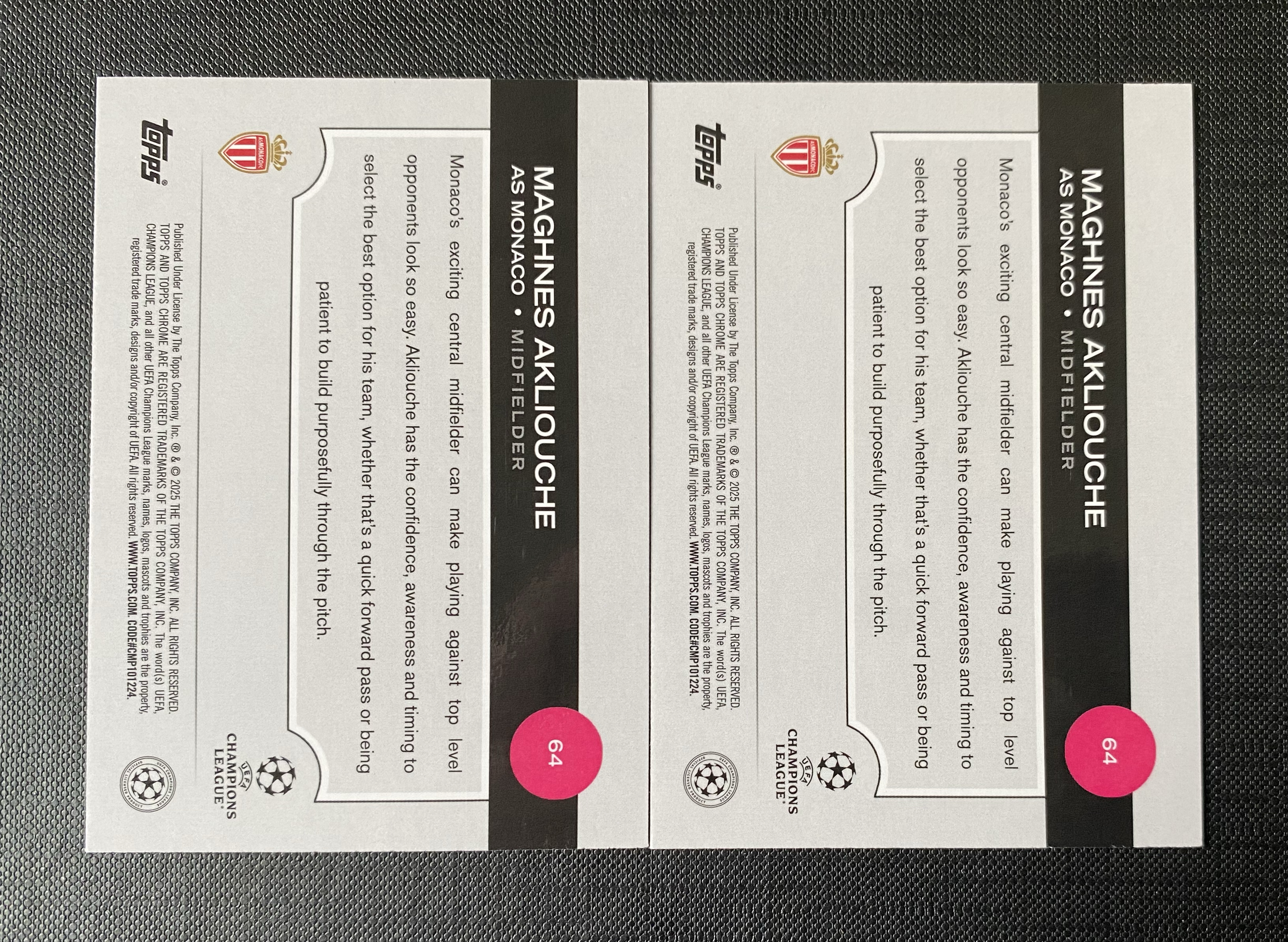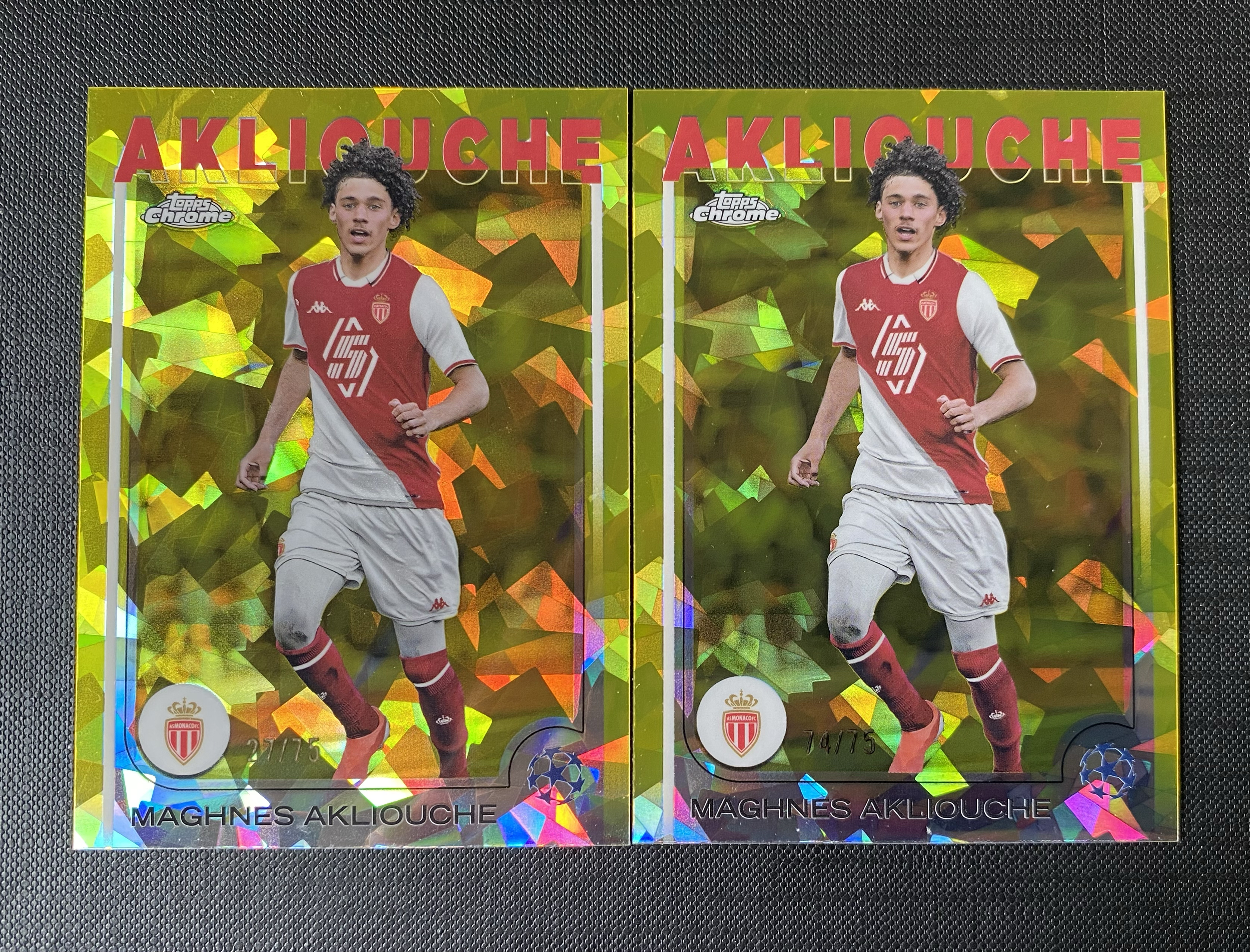 2024-25 Topps Chrome Maghnes Akliouche 蓝宝石系列 摩纳哥 法国新星 阿克利乌什 黄宝石折射 黄碎冰折射 75编 实卡好看 潜力巨大 微瑕如图【冠军】