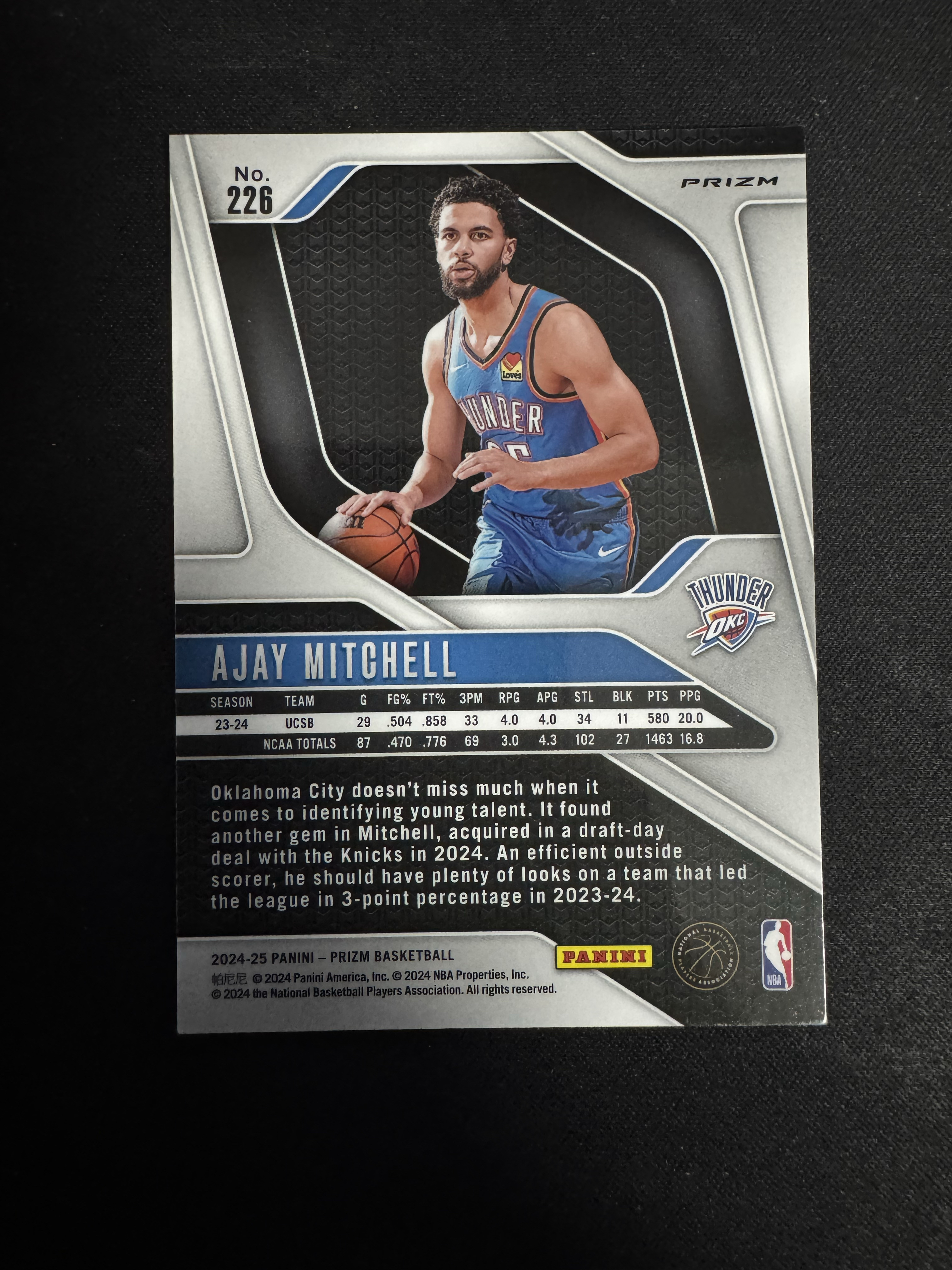 2022-23 Panini Prizm Ajay Mitchell RC 【农夫】帕尼尼 PZ 雷霆 新秀RC 阿杰米切尔 波点折 闪卡 银折 折射 卡品如图《唐11.15