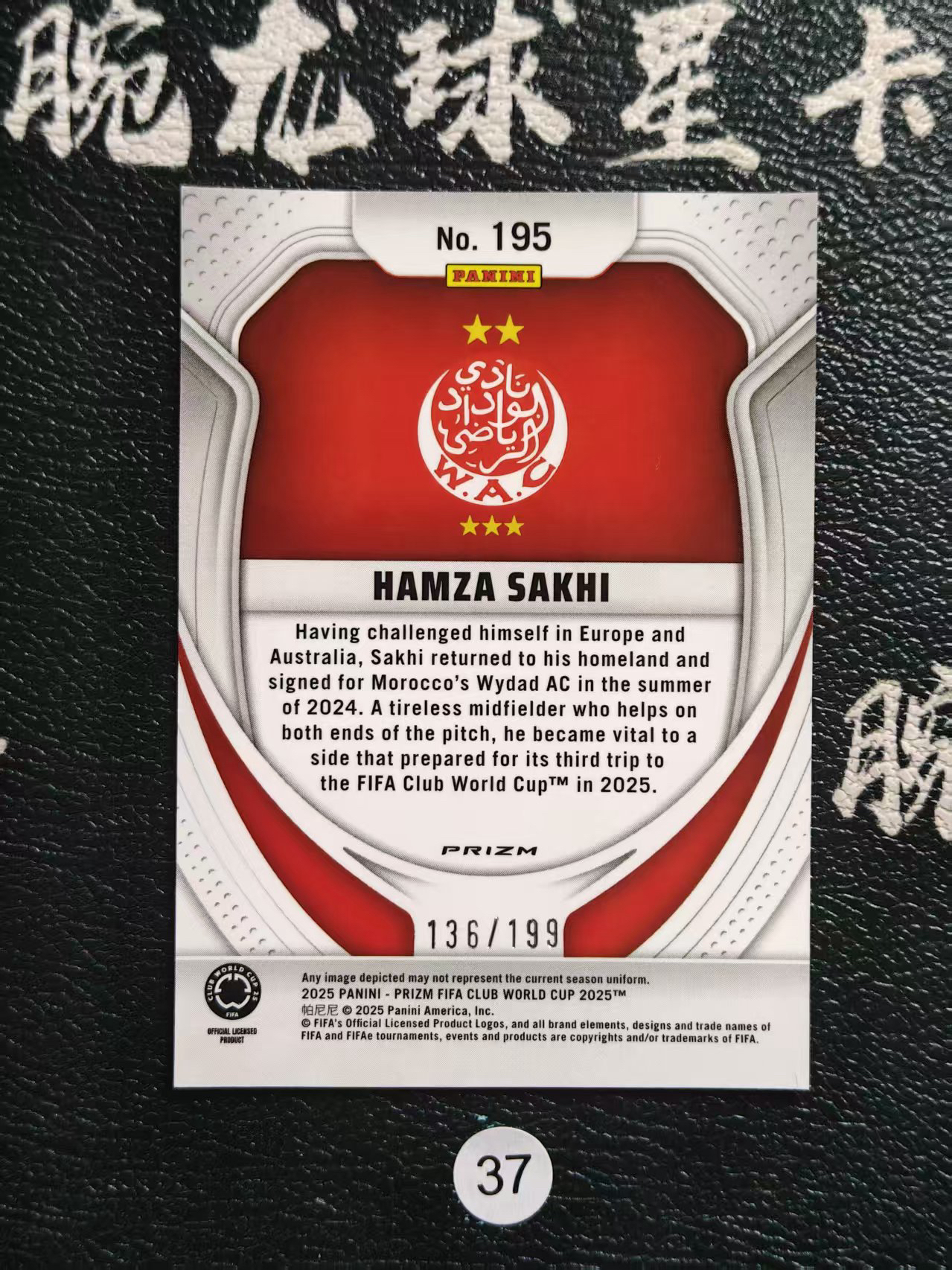 2025 【腕龙拍卖 接代卖】 腕龙桐哥AN5 Panini Prizm 世俱杯 PZ 哈姆扎 萨希 RC新秀 红折 136/199编 HAMZA SAKHI 卡品如图 收藏必备