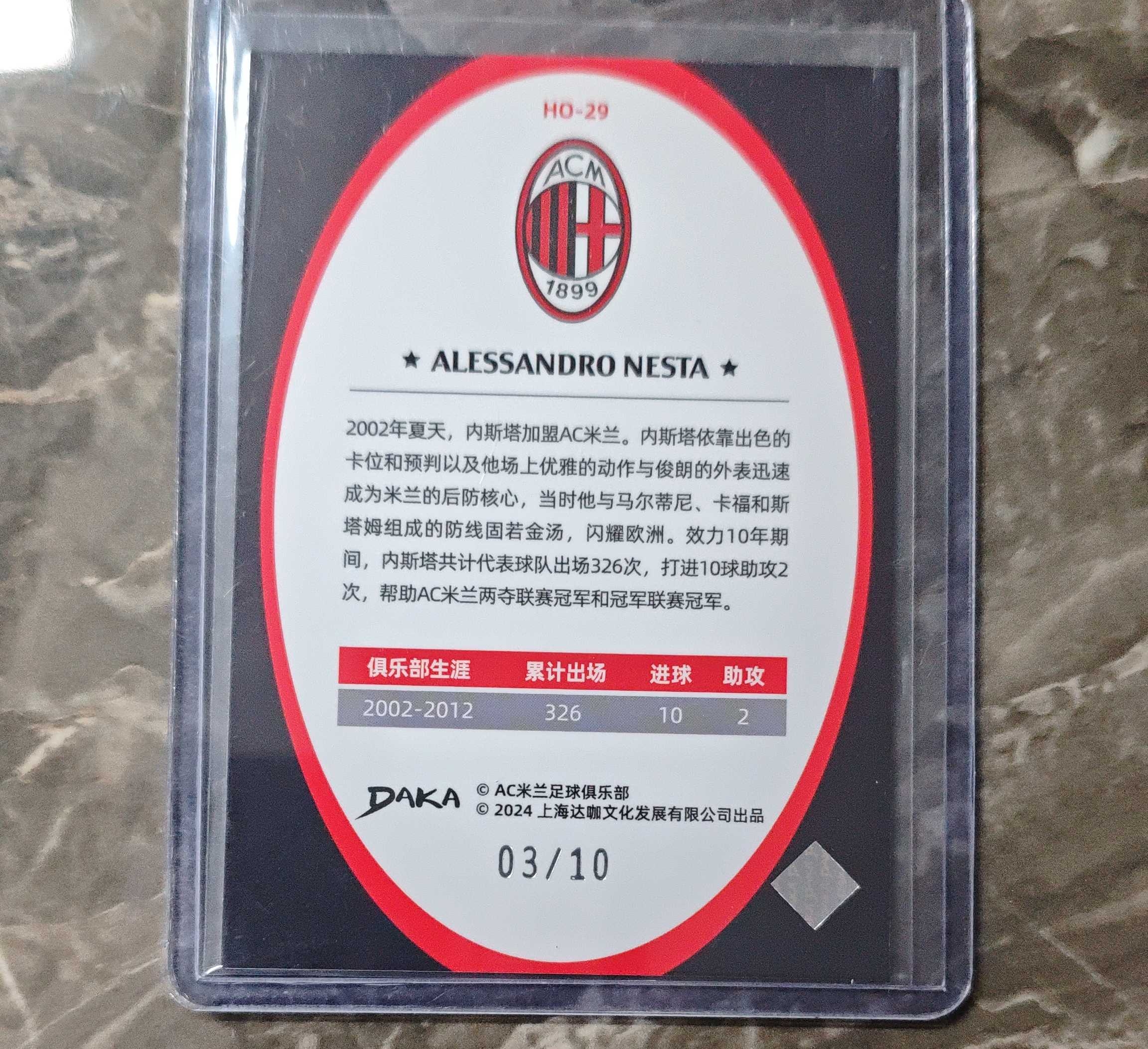 2024 DAKA HOLOCENE Alessandro Nesta 达咖 AC米兰 亚历山德罗 内斯塔 LEGEND 传奇 特卡 金折 03/10编 带编 折射 卡品如图 收藏 凑套必备 V16