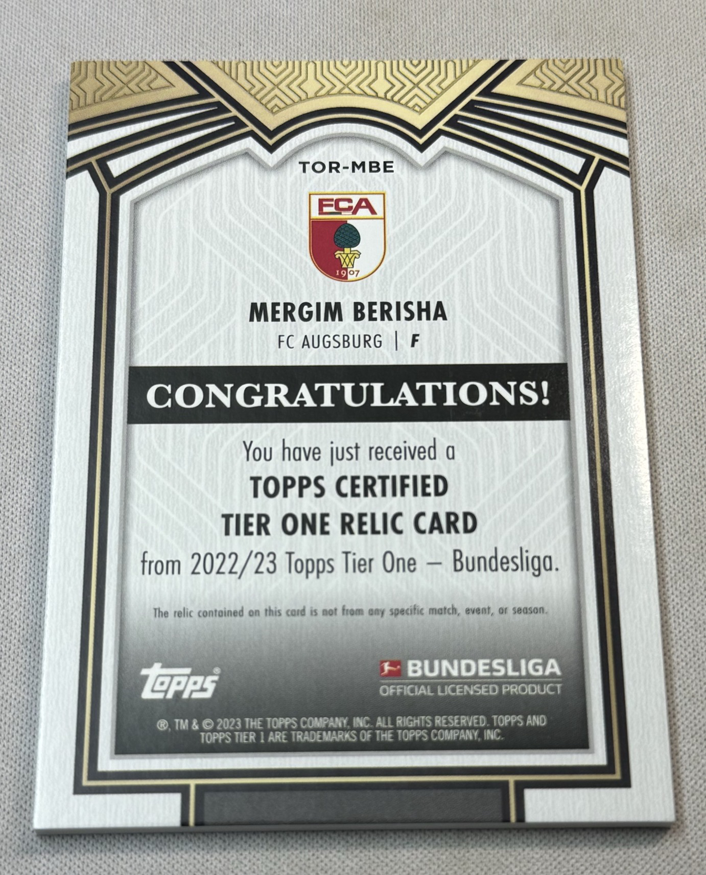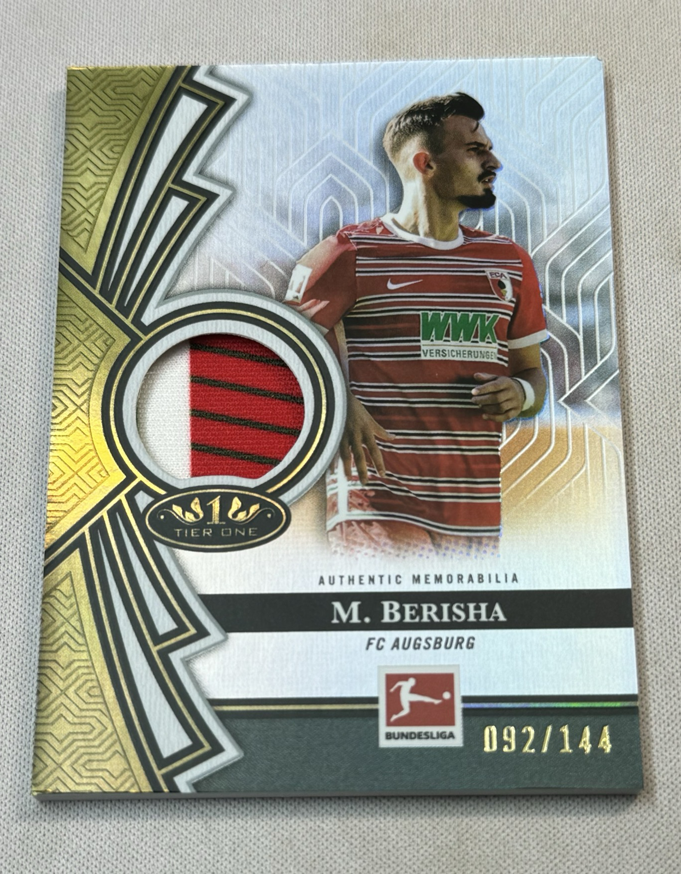2023 Topps Tier One Mergim Berisha 梅吉姆 贝里沙 奥格夫斯堡 德国🇩🇪 patch切割 三色物料 暴力切割 092/144编 实卡精美 凑套必备 不保卡品