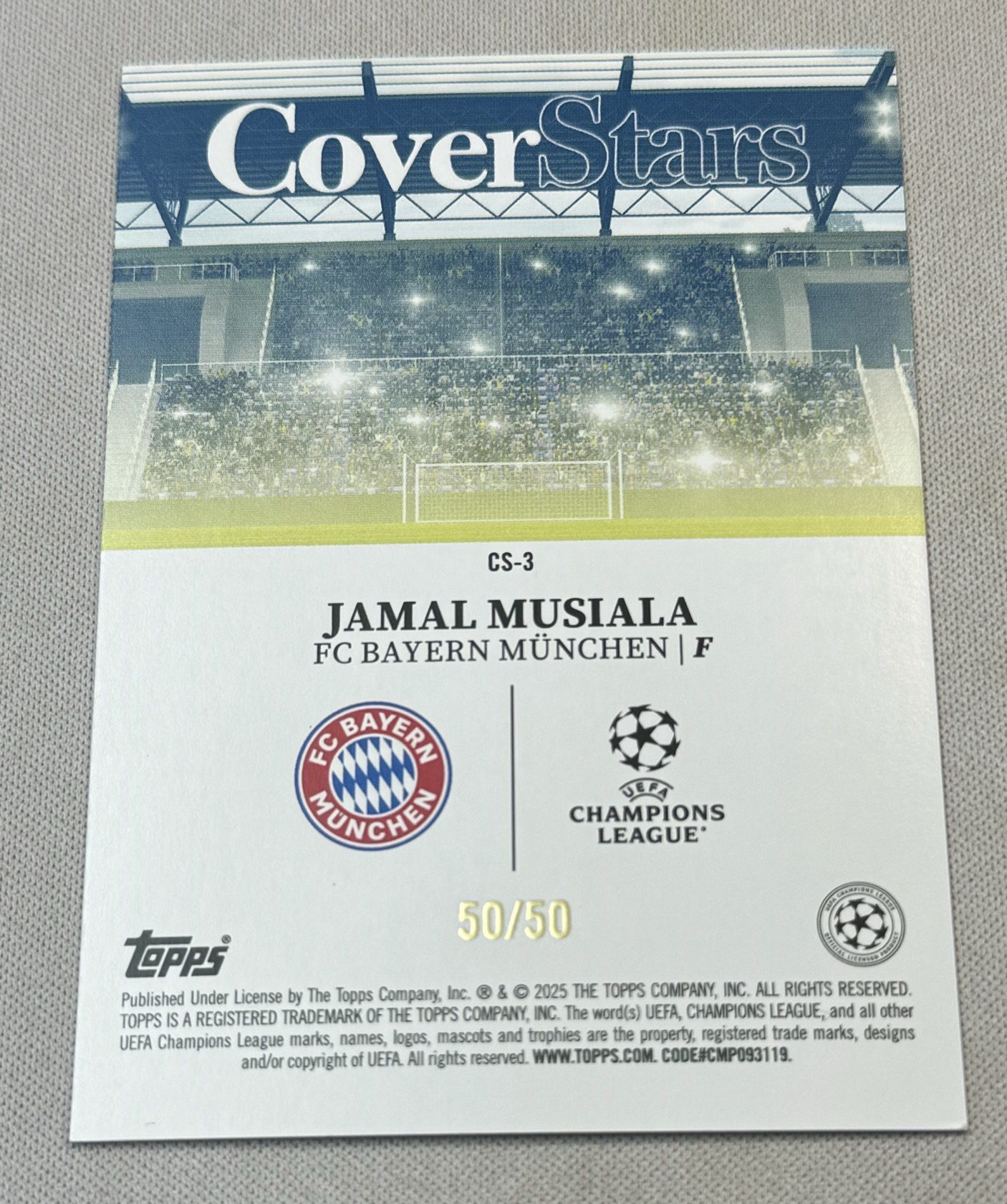2025 Topps UEFA Champions League Jamal Musiala 欧冠UCC 拜仁 德国🇩🇪 贾马尔 穆夏拉 50/50编 尾编 约等于1/1 封面特卡 金折 不保卡品