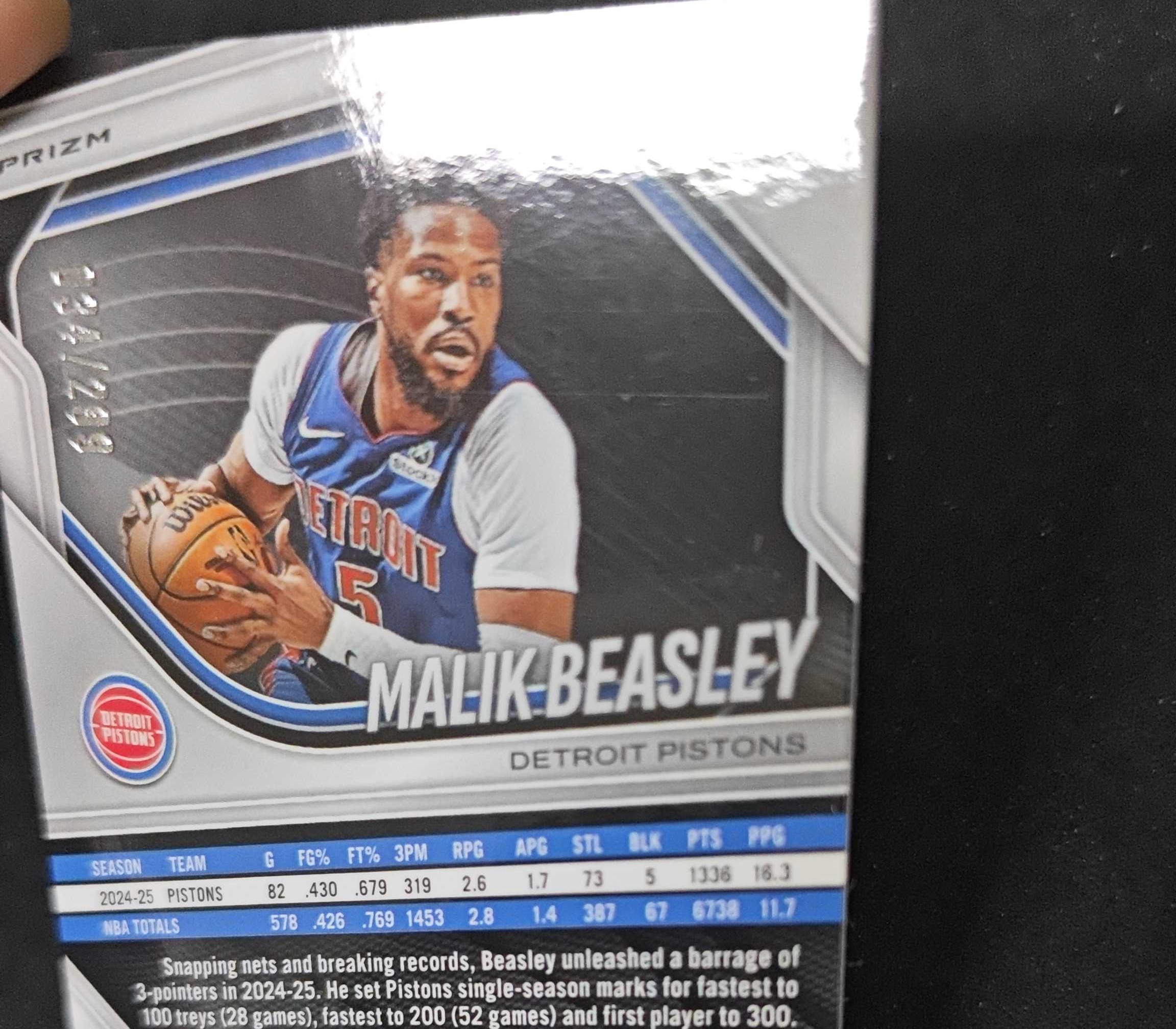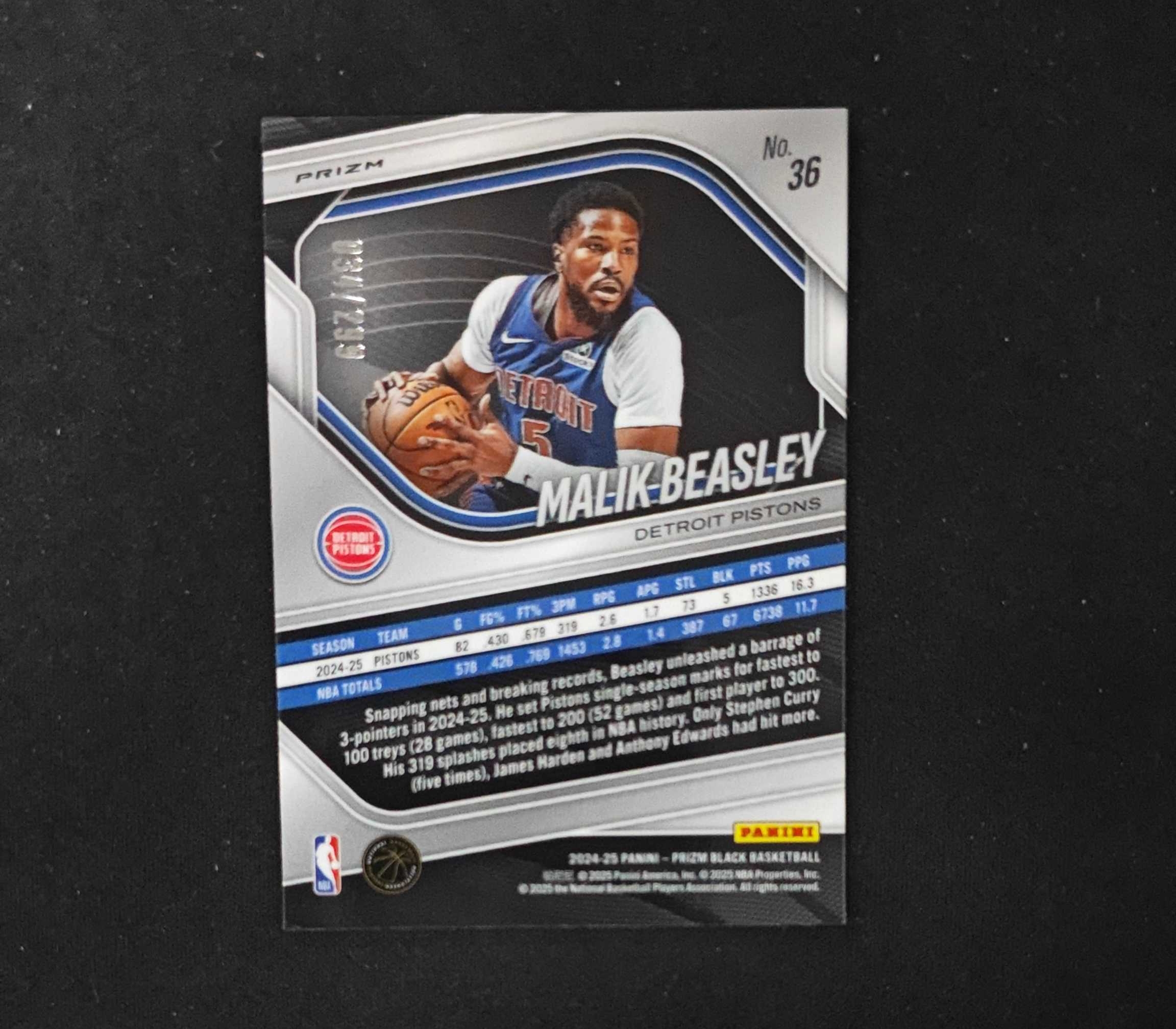 2024-25 Panini Prizm Black Malik Beasley 【SC拍卖】Pz 活塞 比斯利 299编 红折 瑕疵如图 收藏必备(小骆)