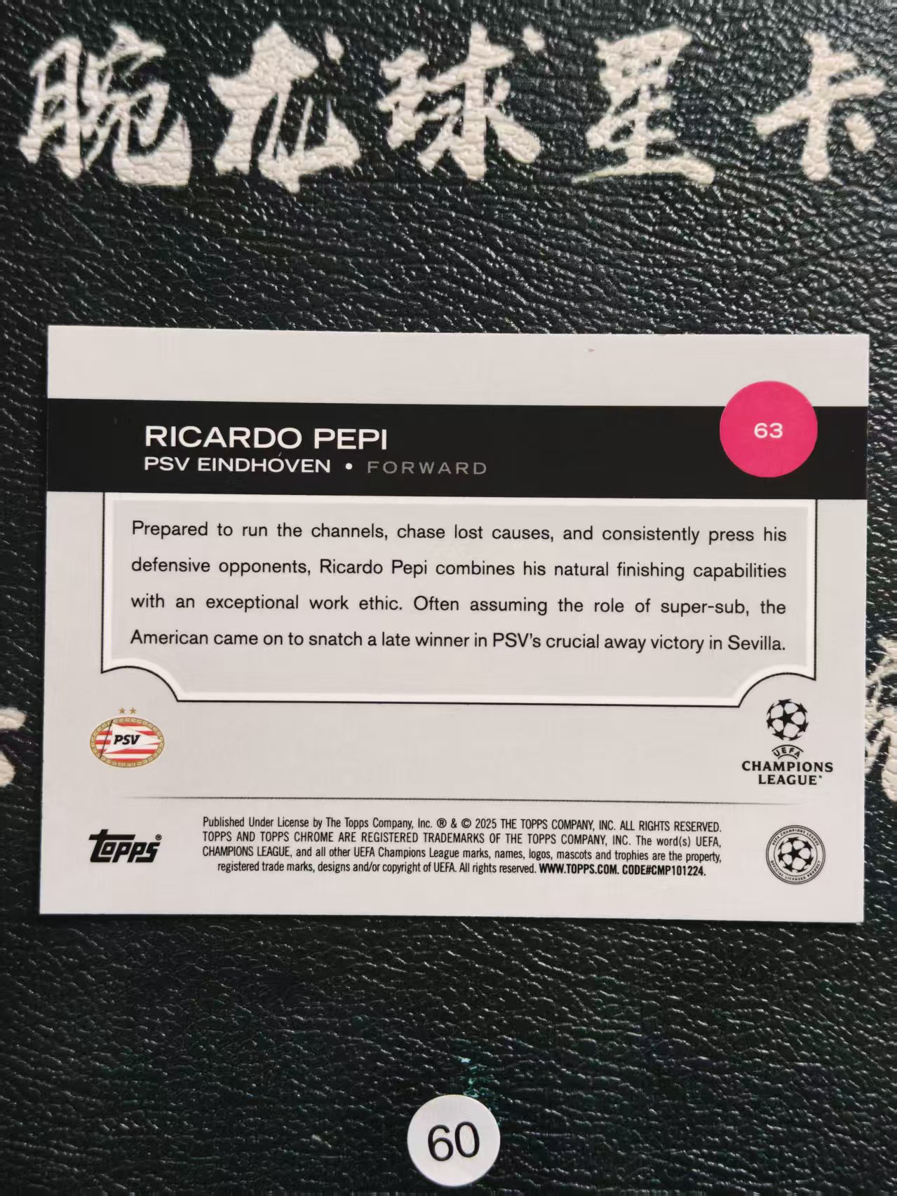 2025 【腕龙拍卖 接代卖】 腕龙宇总AN8 Topps Chrome 欧冠 TC 红包独占 佩皮 埃因霍温 美国 RICARDO PEPI 卡品如图 收藏必备