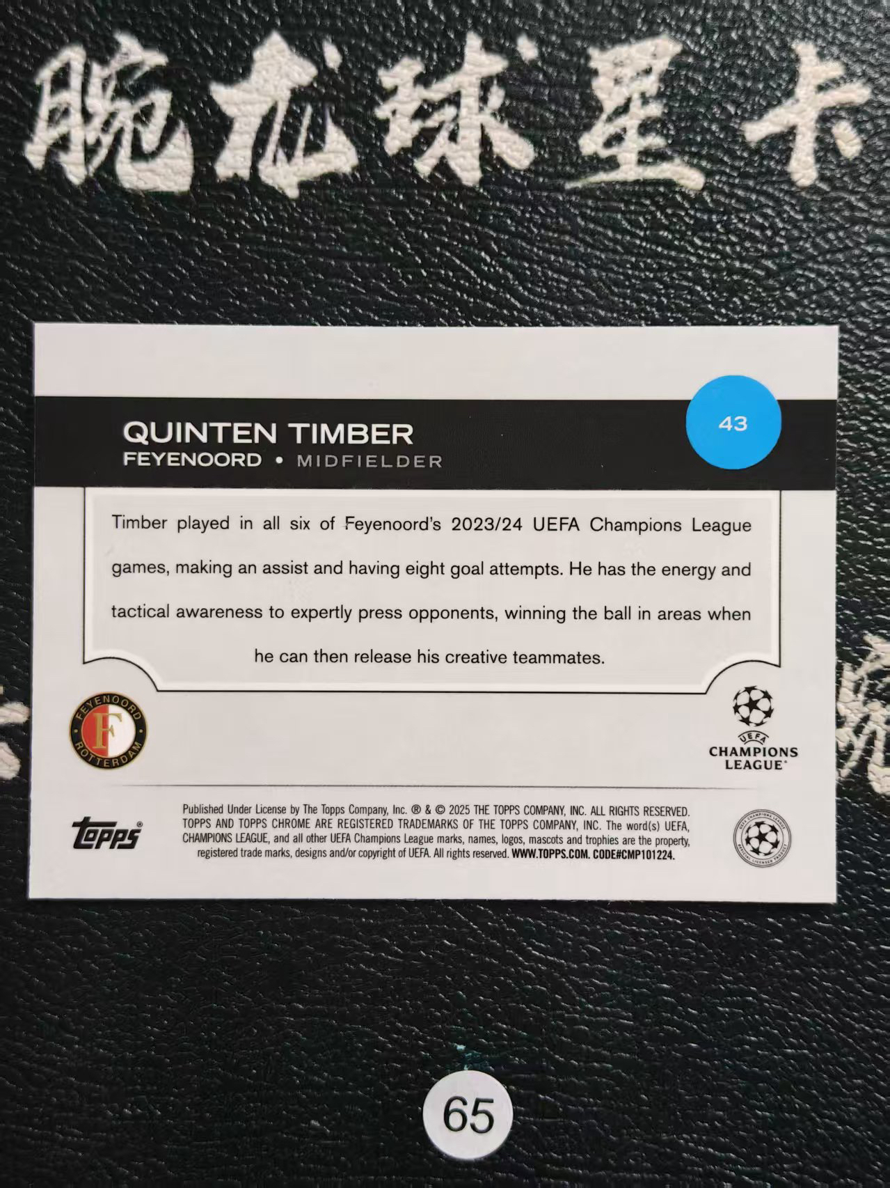 2025 【腕龙拍卖 接代卖】 腕龙宇总AN8 Topps Chrome 欧冠 TC 红包独占 廷贝尔 费耶诺德 RC新秀 QUINTEN TIMBER 卡品如图 收藏必备