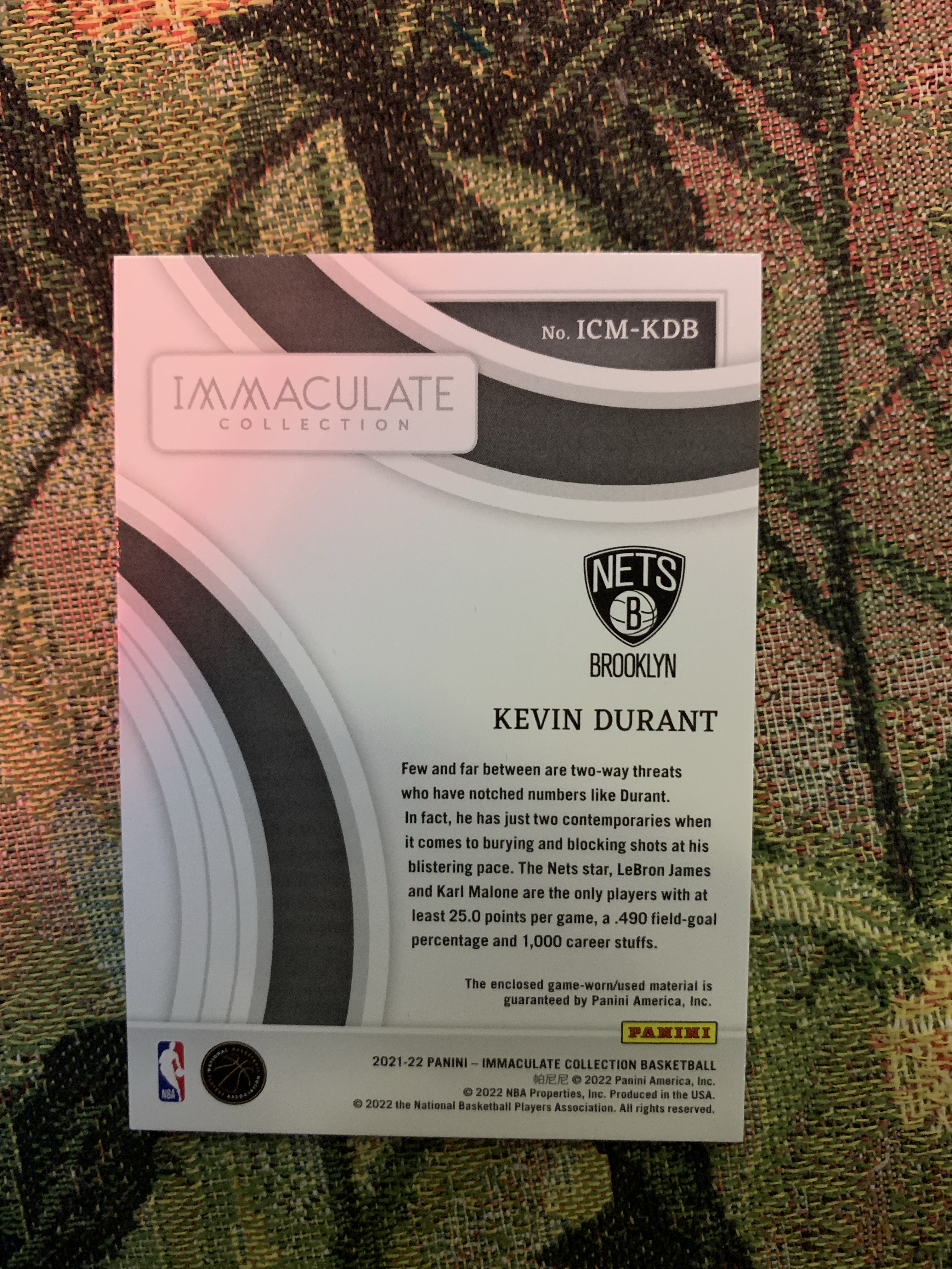 2021-22 Panini Immaculate Collection Kevin Durant 凯文 杜兰特 死神 imm系列 亲穿球衣切割 56/99编 物料 专收必备 用户