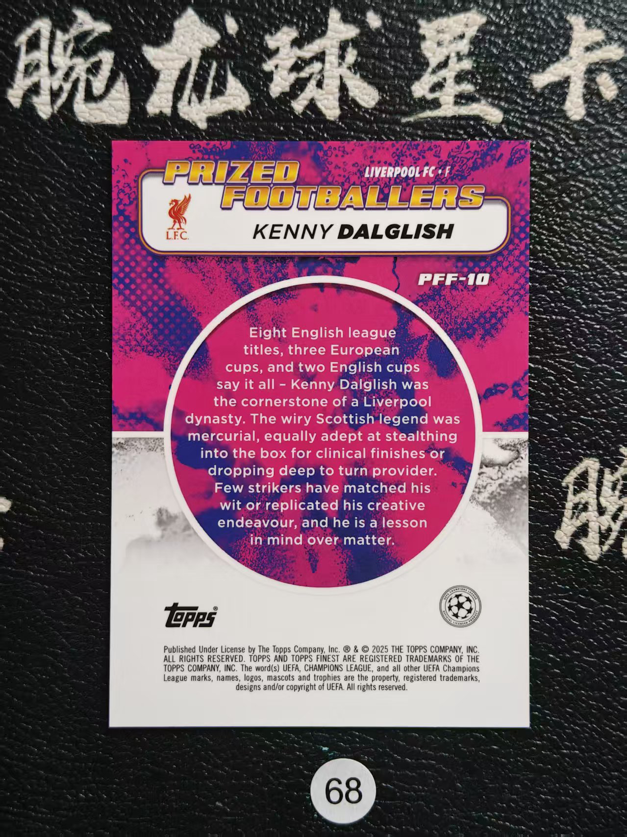 2025 【腕龙拍卖 接代卖】 腕龙宇总AN8 Topps Finest 欧冠 欧战 达格利什 利物浦 肯尼国王 典范球员泼墨变化版 大比例 黄红泼墨 KENNY DALGLISH 卡品如图 收藏必备