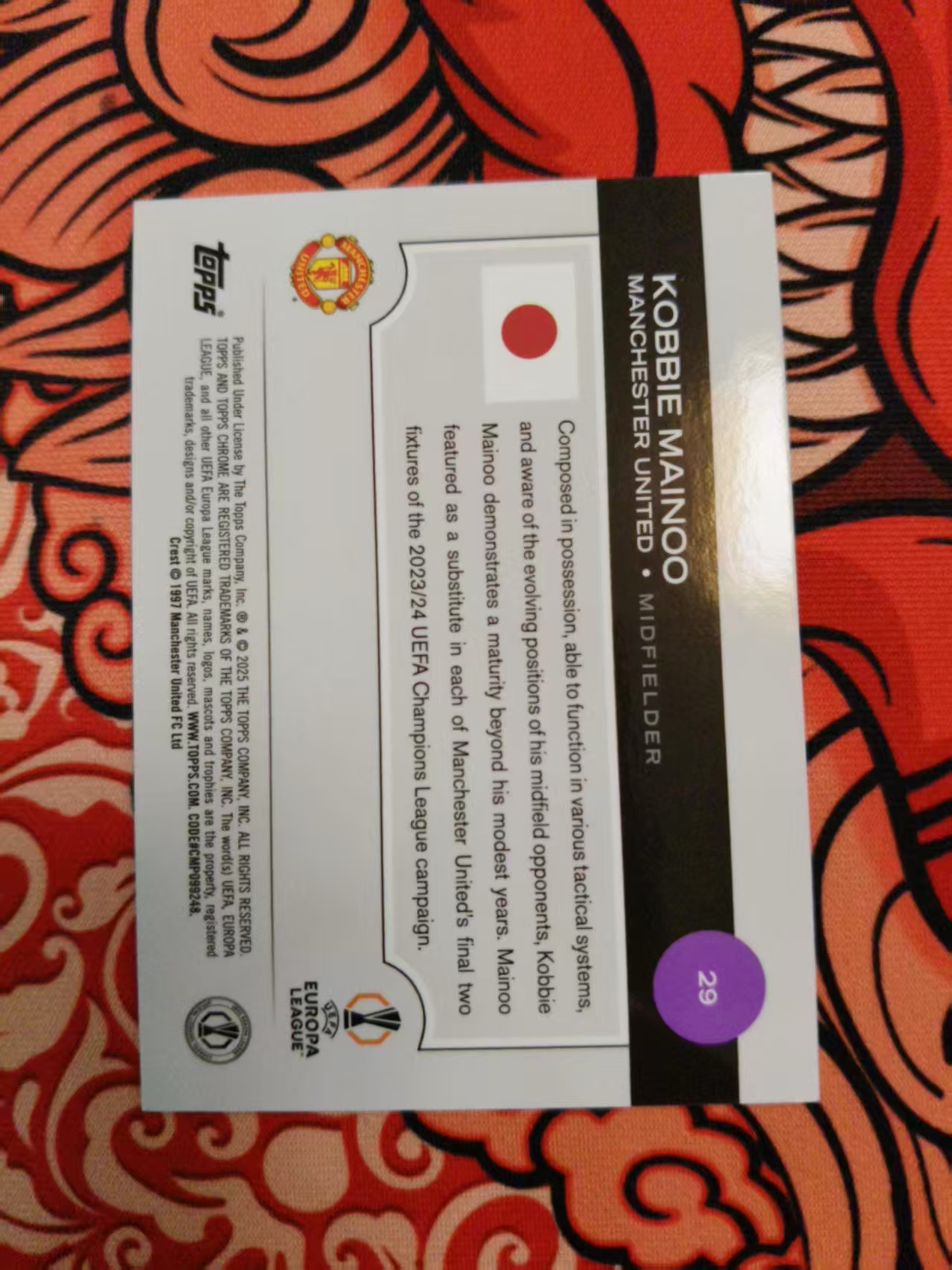 2025 Topps Chrome Kobbie Mainoo 欧战 UCC 樱花 曼联 科比 梅努 25编 橙MOJO折 英格兰【ZYP代拍】椰子