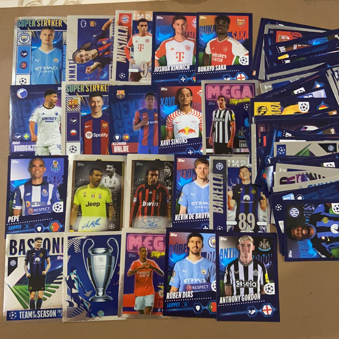 2023-24 Topps 欧冠 贴纸 【不累计 不到付 卡品如图】 130张 南美版 迪马利亚 德布劳内 巴斯托尼 巴雷拉 莱万 巴尔德吉 哈兰德 邦马蒂 穆西亚拉 萨卡 戈登 卡品如图