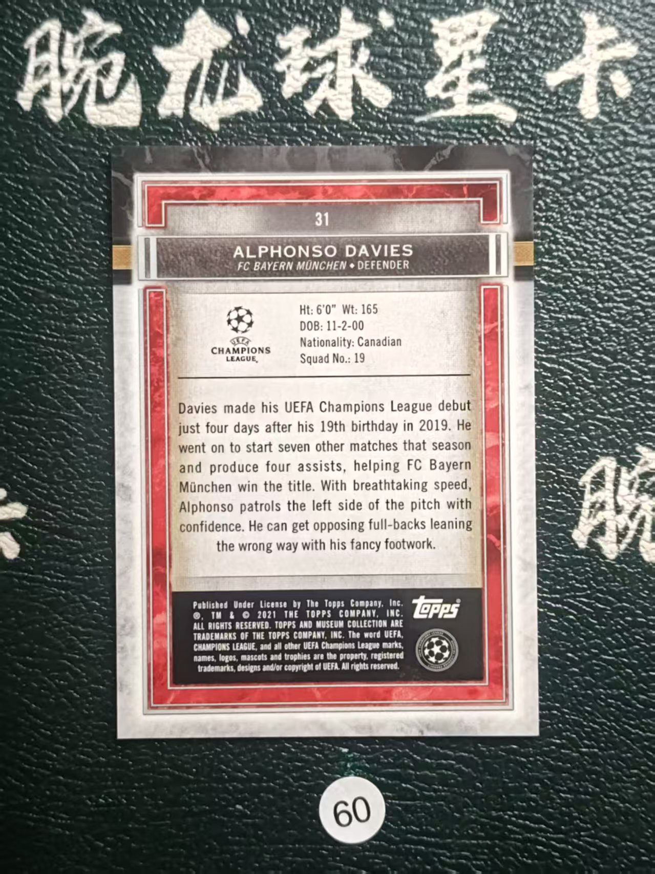 2020 【腕龙拍卖 接代卖】 腕龙璟AM1 Topps Museum 博物馆 欧冠 阿方索 戴维斯 拜仁慕尼黑 ALPHONSO DAVIES 卡品如图 收藏必备
