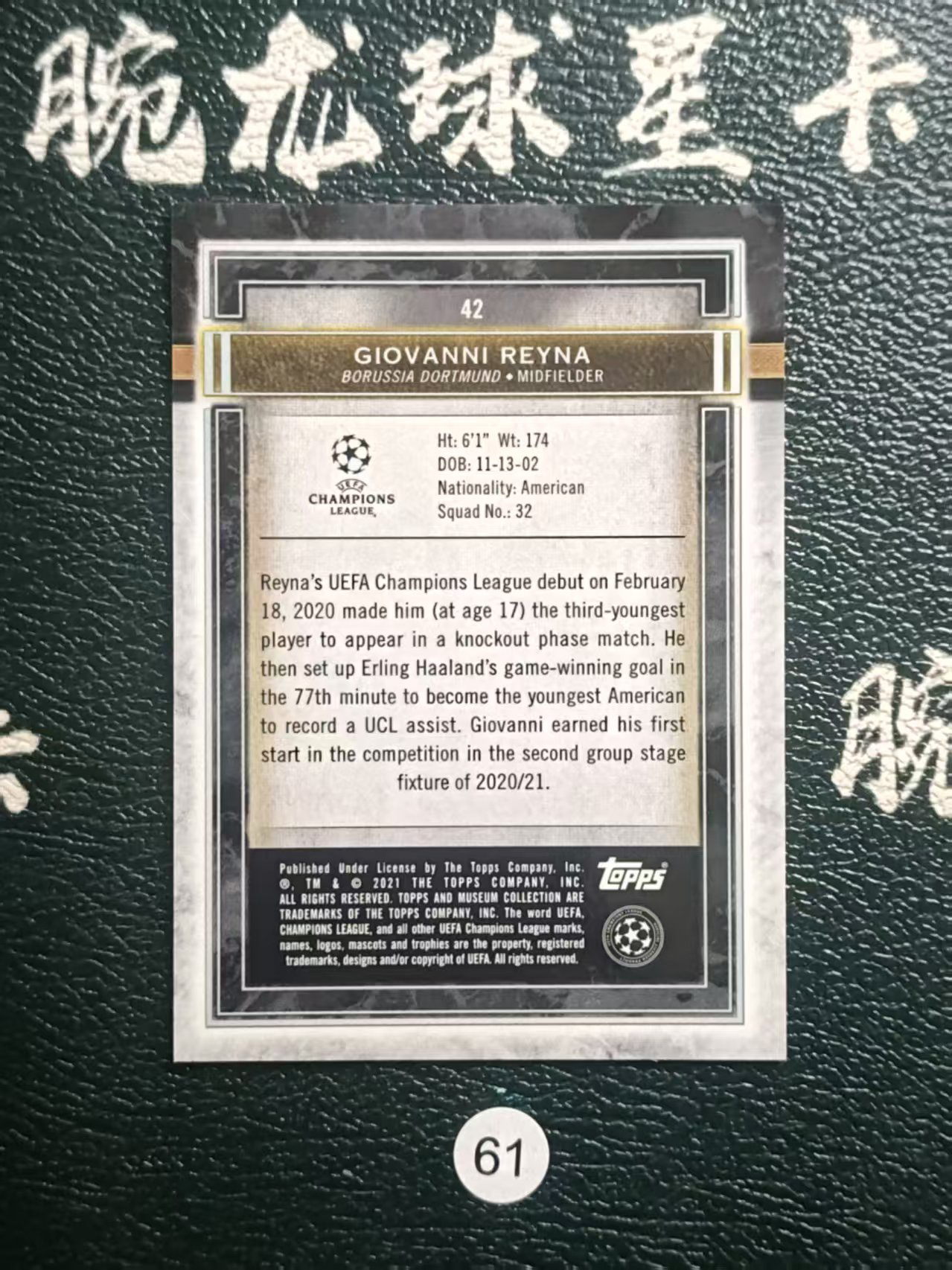 2020 【腕龙拍卖 接代卖】 腕龙璟AM1 Topps Museum 博物馆 欧冠 雷纳 多特蒙德 GIOVANNI REYNA 卡品如图 收藏必备