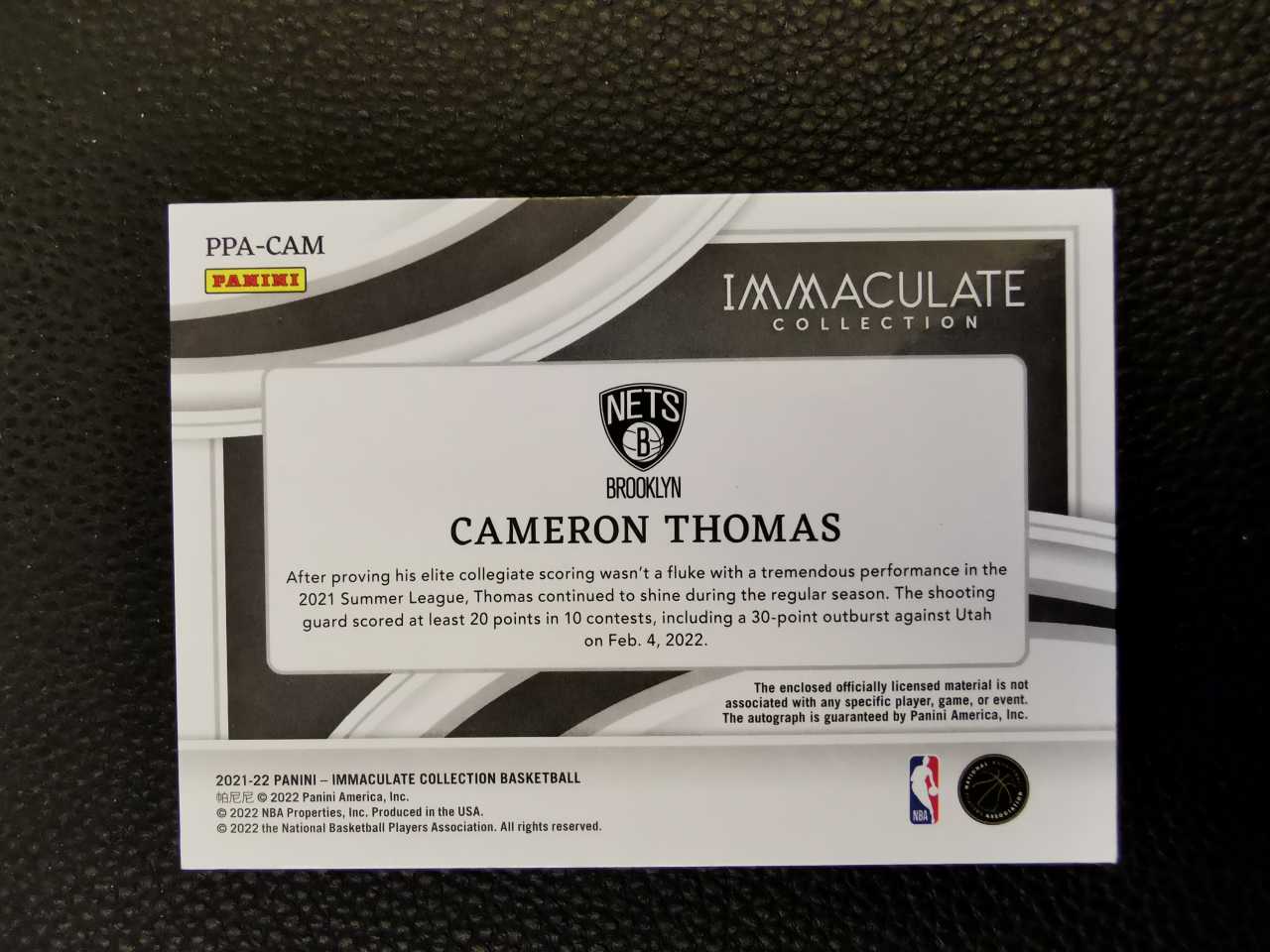 【金矿拍卖】2021-22 immaculate 篮网新秀rc 小火车 卡梅隆托马斯 Cameron Thomas 卡签签字 大窗双色球衣字母切割 rpa PPA 23/50编 背角轻印 叶金