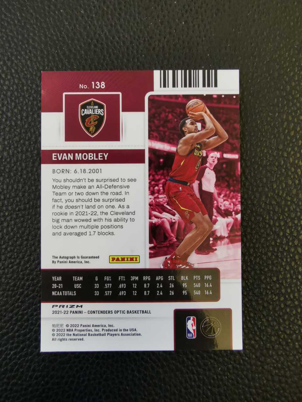 【金矿拍卖】2021-22 球票 contenders optic rookie ticket 骑士新秀rc 埃文莫布利 莫布里 Evan mobley 卡签签字 银折折射 探花郎 轻印 叶金