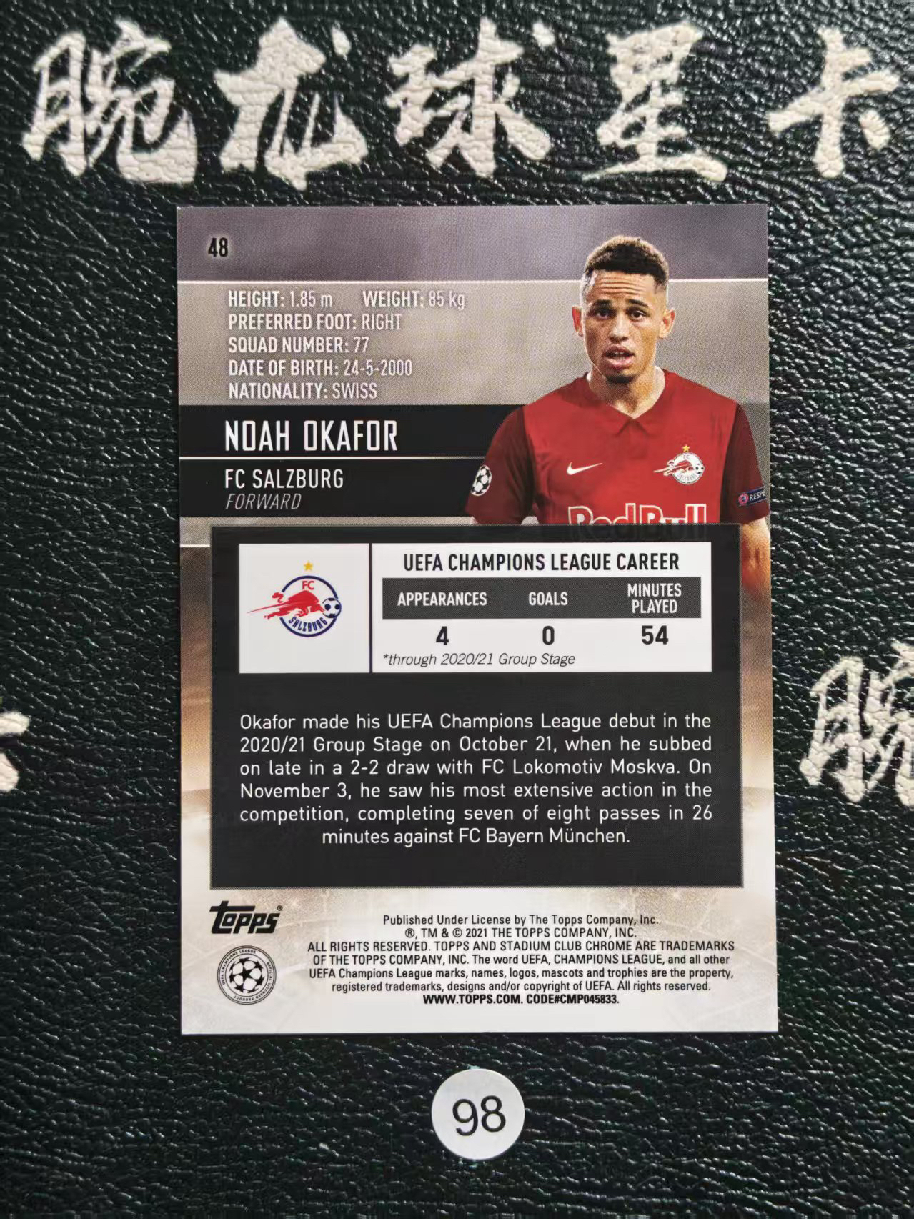 2021 【腕龙拍卖 接代卖】 腕龙宇总AN8 Topps Stadium Club 欧冠 竞技场 元年 奥卡福 萨尔茨堡红牛 RC新秀 橙闪电折 NOAH OKAFOR 卡品如图