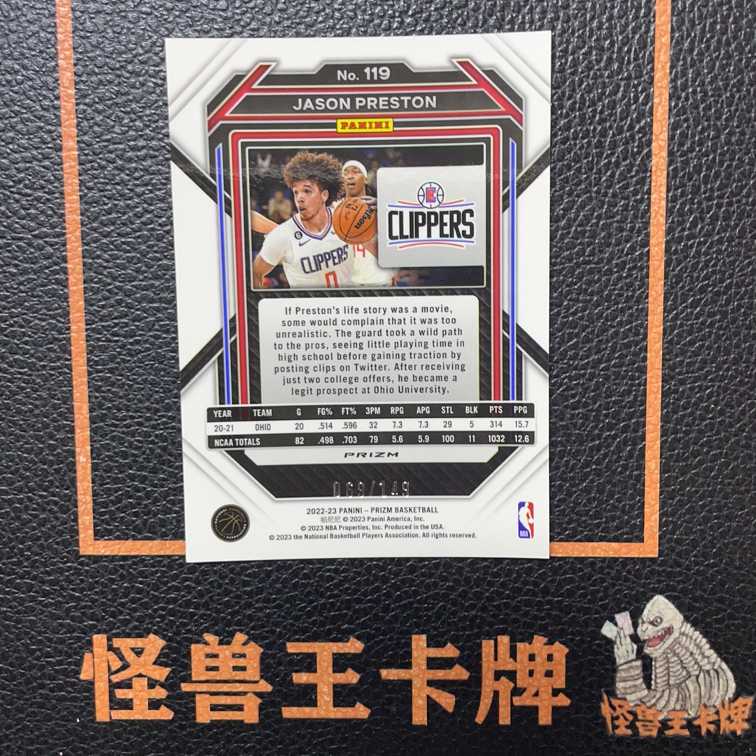 (怪兽拍卖) GSW-A52 2022-2023 Panini Prizm Jason Preston 快船 杰森 普雷斯顿 069/149编 紫碎冰折 卡品如图