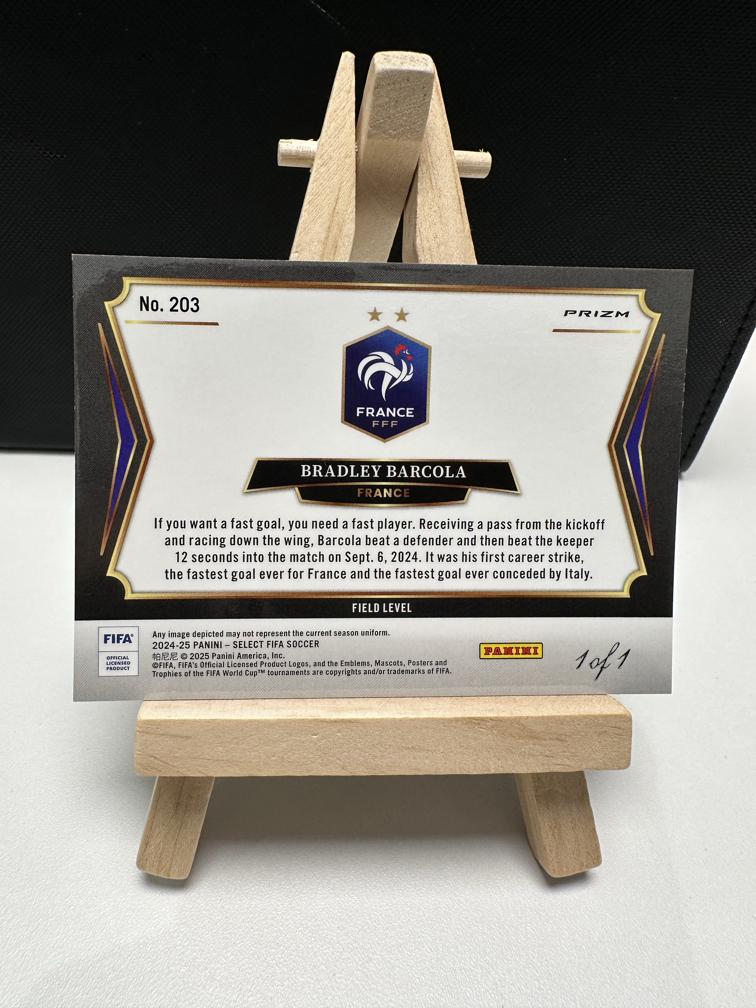 2024-25 Panini Select Bradley Barcola fifa select 法国 大巴黎前锋 布拉德利 巴尔科拉 1/1 1of1 一编正黑折三级base 未来可期 X