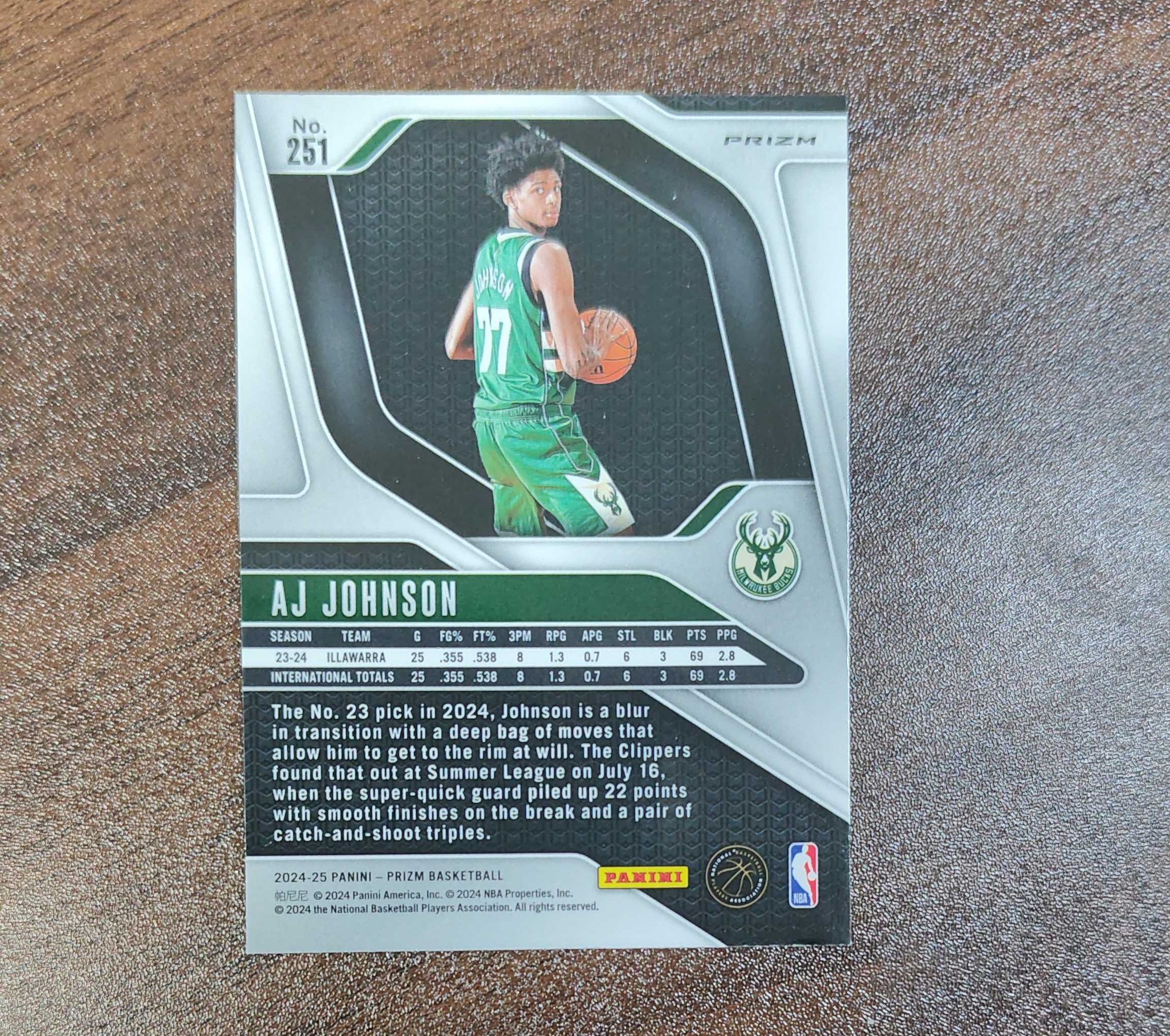 2024-25 Panini Prizm AJ Johnson RC Prizm AJ 约翰逊 RC 新秀 银折 雄鹿