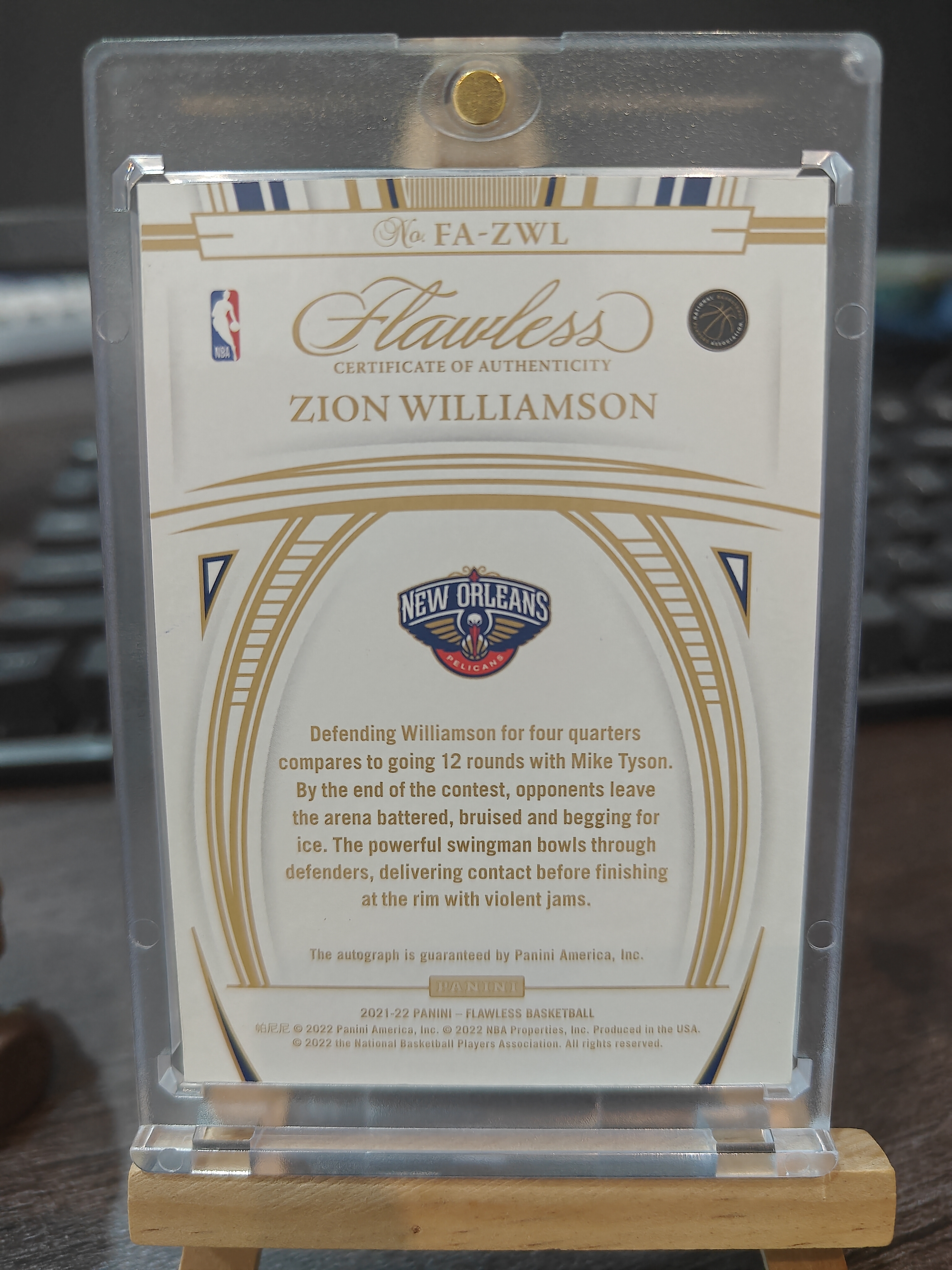2021-22 Panini Flawless Zion Williamson 锡安 威廉森 胖虎 手提 05/15编 超低编 卡签签字 状元 天赋炸裂 实卡超帅 红平行 收藏专收必备 卡品如图