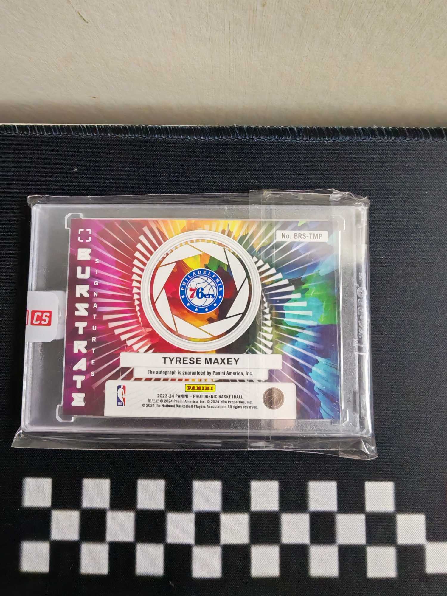 2023-24 Panini PaniniPhotoGenicNBA Tyrese Maxey 泰瑞西 马克西 费城76人 全明星 连续爆炸表现 上镜 签字 贴纸 10/50 埃奇库姆 乔治 队友